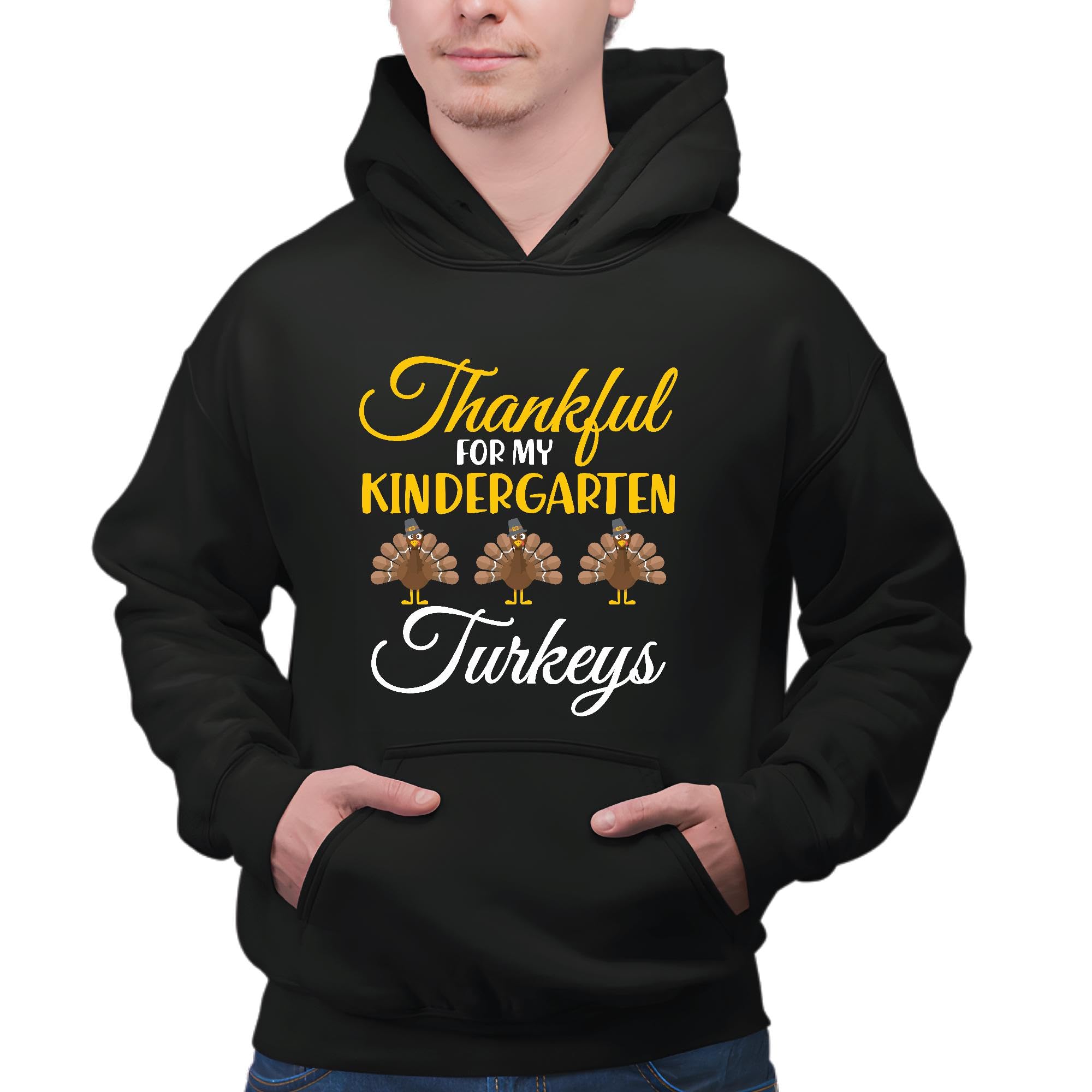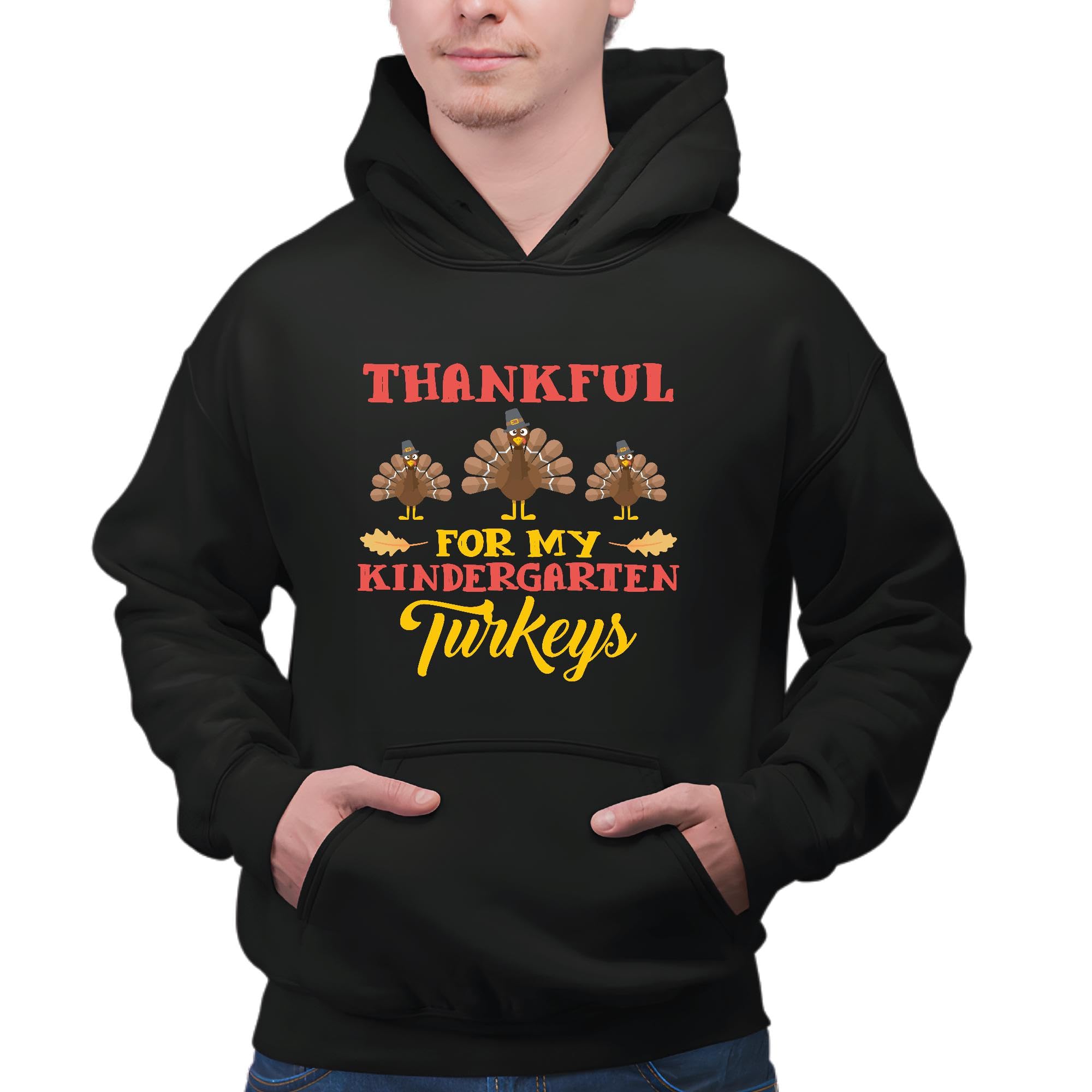Thanksgiving Gift for Kindergarteners Kids Children Turkeys Black and Muticolor Unisex Hoodie