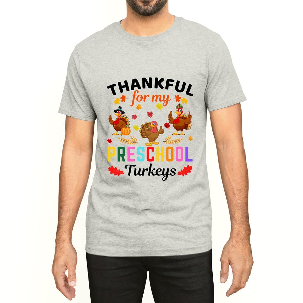 Thanksgiving Gift for Preschool Turkeys Teacher Appreciation Men Women White Gray Multicolor T shirt