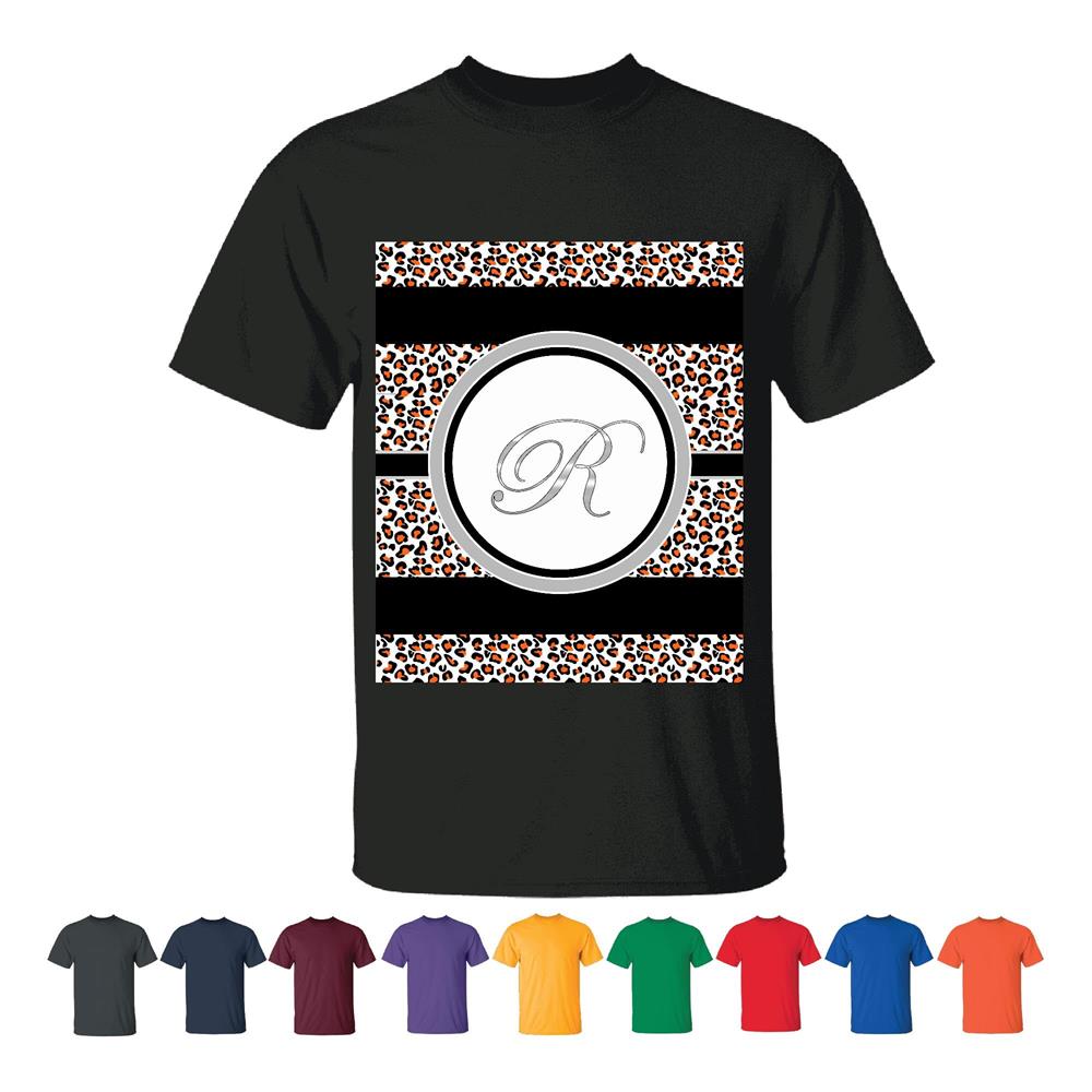 The letter R elegant Cheetah animal print Monogram wild animal Men Women Black T shirt