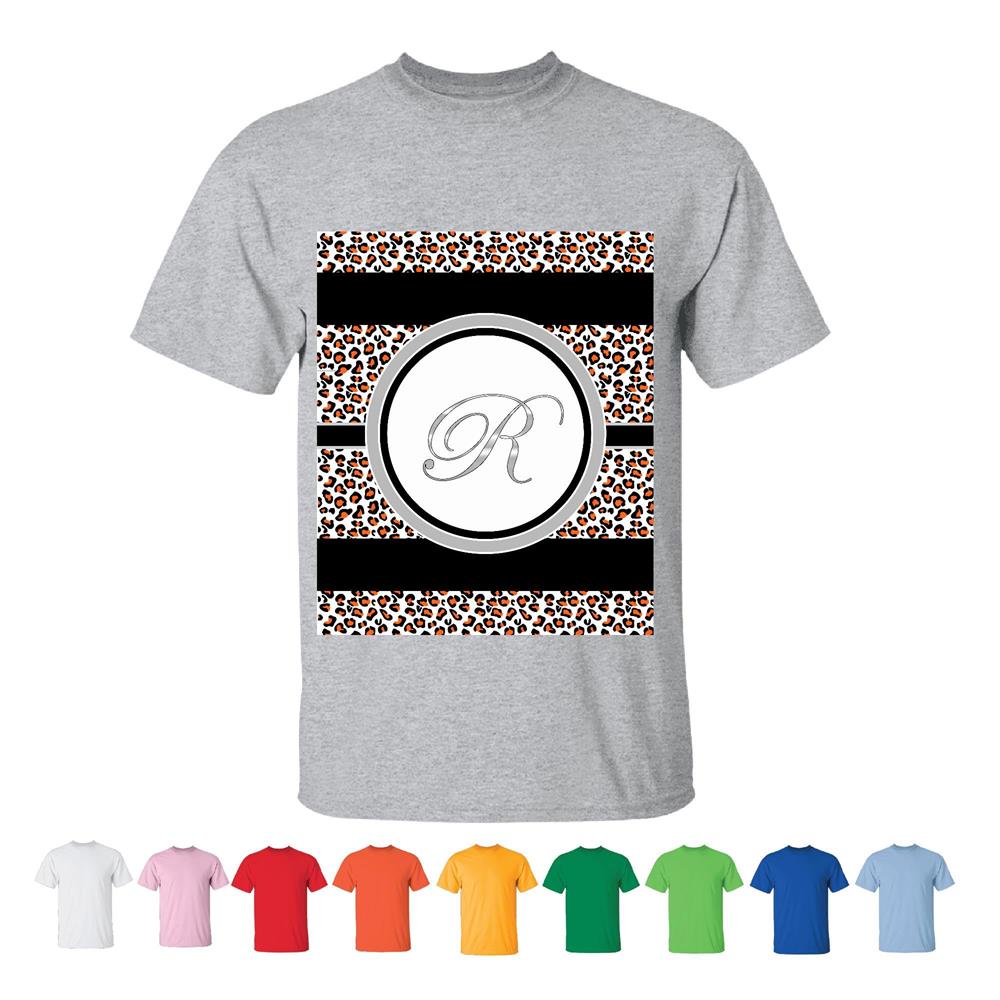 The letter R elegant Cheetah animal print Monogram wild animal Men Women White Gray T shirt