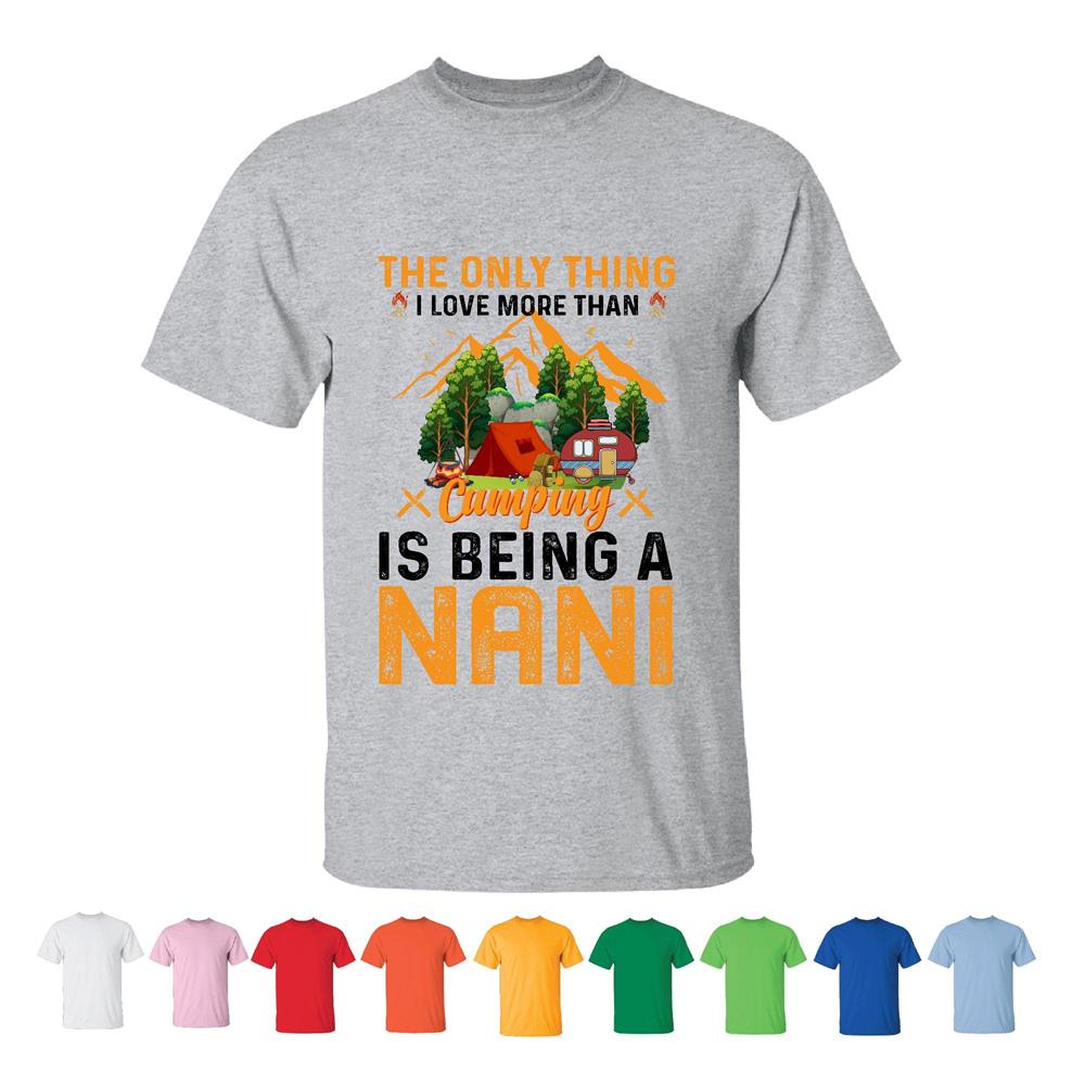 The only I love more than Camping is being a Nani for Grandma love outdoor activities Men Women White Gray T shirt