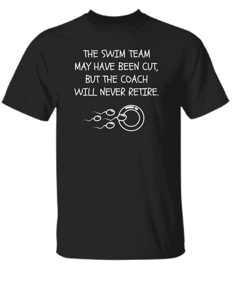 The Swim team may have been cut but the coach will never retire funny humor for Dad Father Men Women Black T shirt