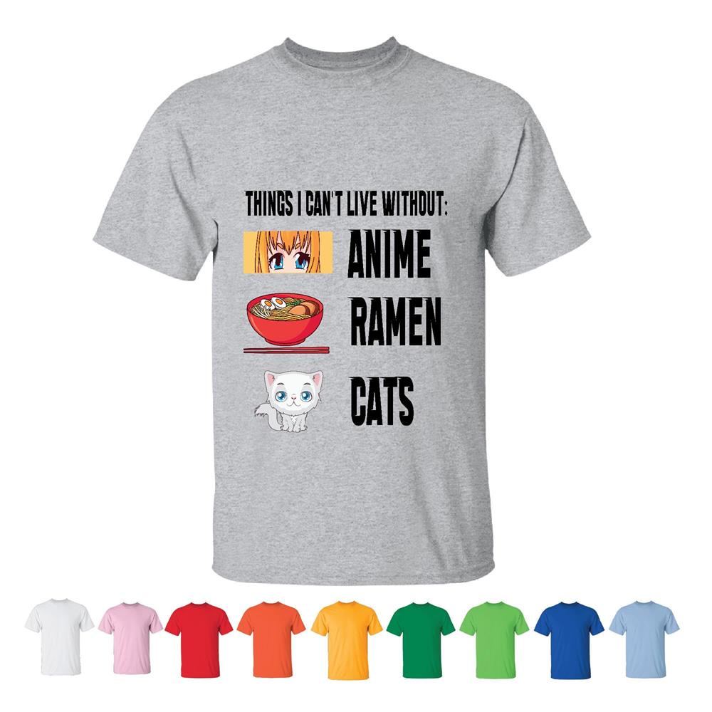 Things I cant Live with out funny anime Ramen Cats Japanese Culture Men Women White Gray T shirt
