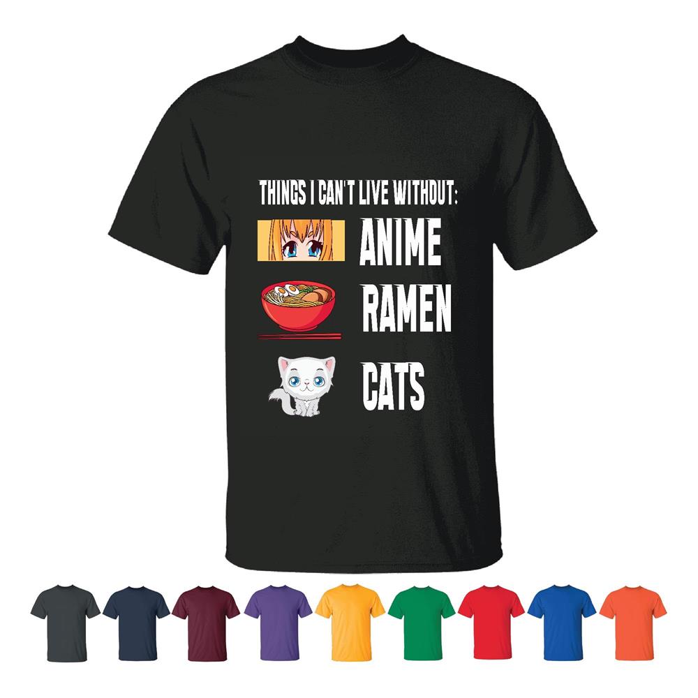 Things I cant Live with out funny anime Ramen Cats Japanese Culture Men Women Black T shirt