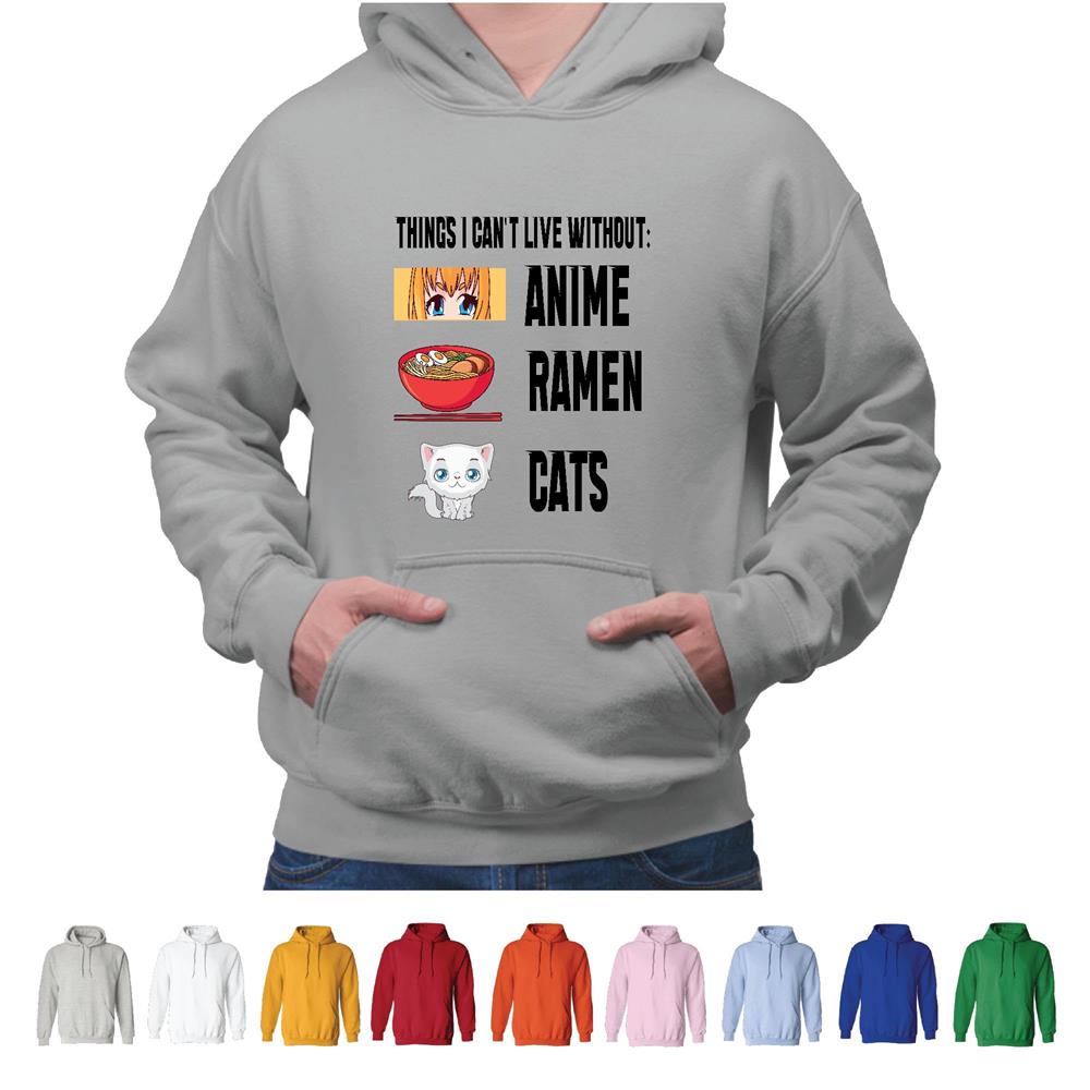 Things I cant Live with out funny anime Ramen Cats Japanese Culture Gray and Muticolor Unisex Hoodie