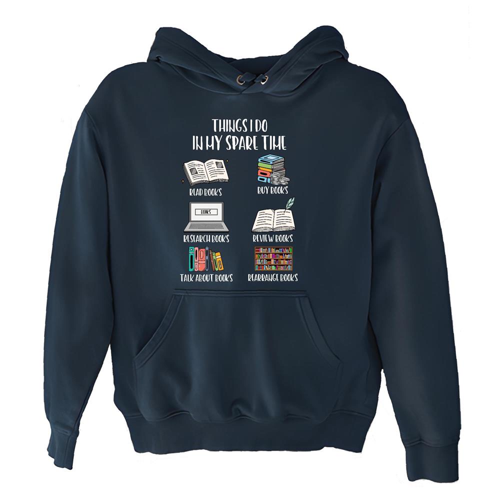 Things I do in My Spare Time for Bookworm Book Lover Navy and Muticolor Unisex Hoodie