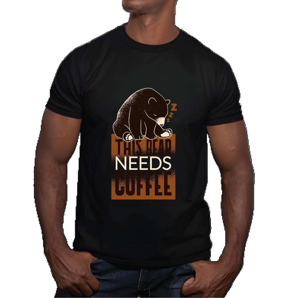 This Bear Needs Coffee Design Gift Creative Graphic For All Ages Men Women Black Multicolor T shirt