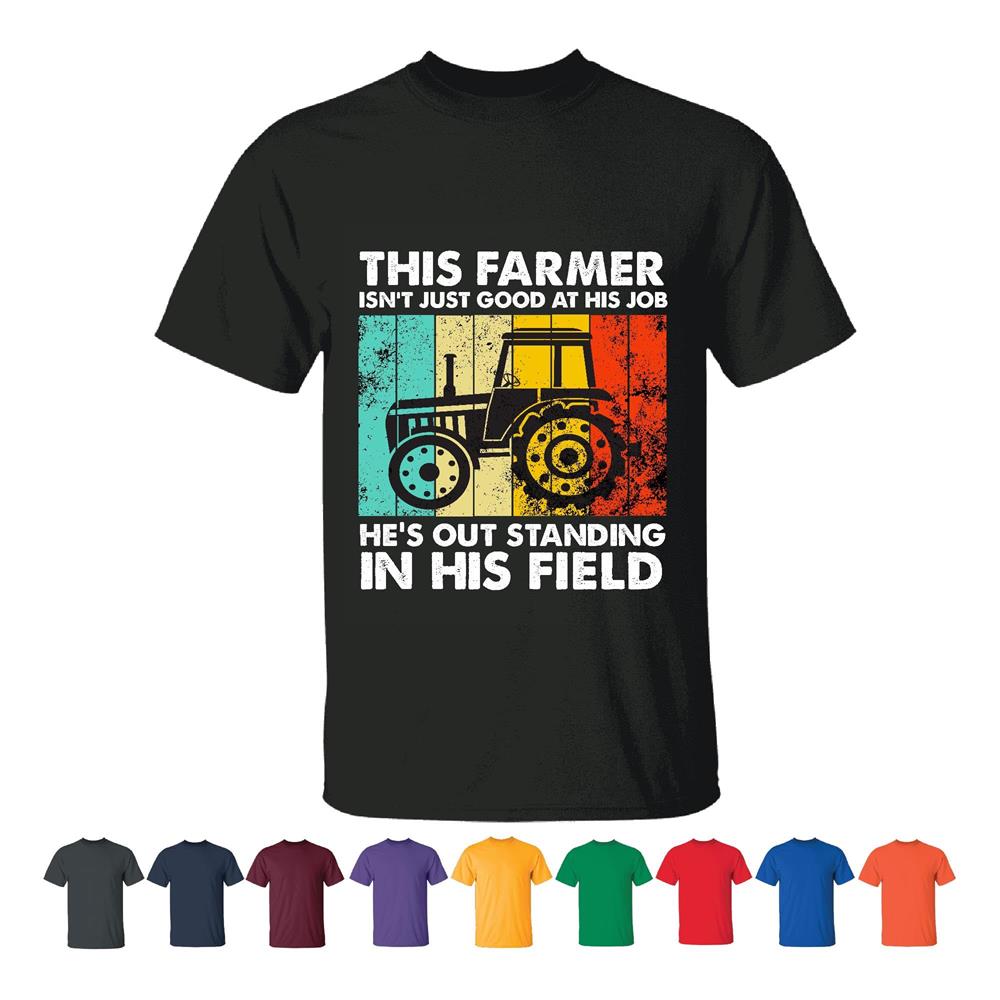 This Farmer is not just good at his job hes outstanding in his field Tractor Farm vehicle Men Women Black T shirt