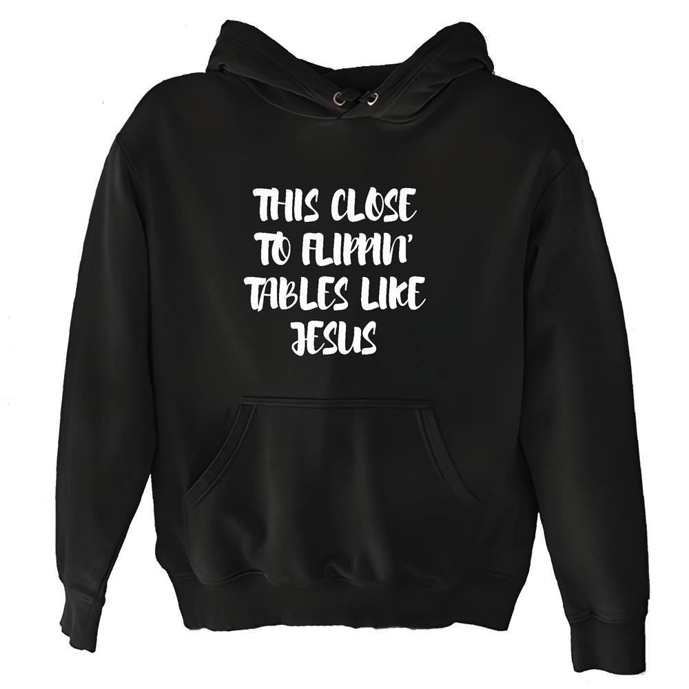 This close to flippin tables like Jesus thankful saying from Christian Jesus lover Black and Muticolor Unisex Hoodie