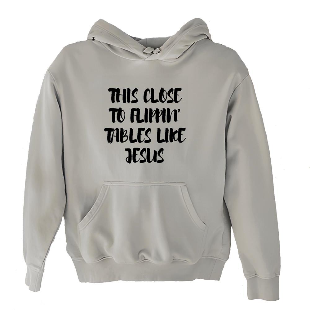 This close to flippin tables like Jesus thankful saying from Christian Jesus lover Gray and Muticolor Unisex Hoodie