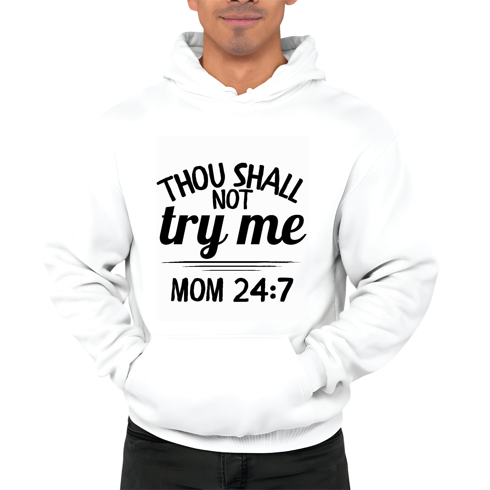 Thou shall not try me Mom 24 for best Mom White and Muticolor Unisex Hoodie