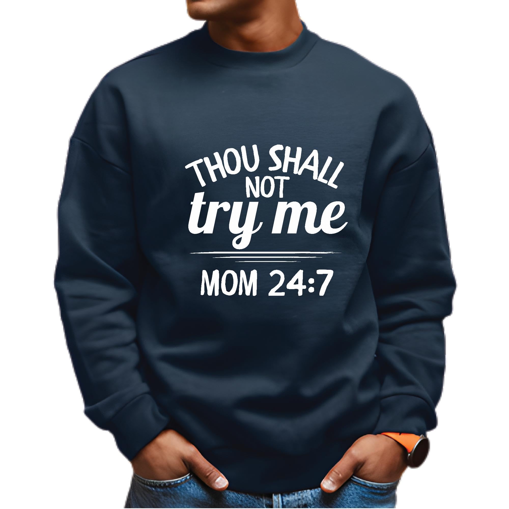 Thou shall not try me Mom 24 for best Mom Navy Muticolor Unisex Sweatshirt