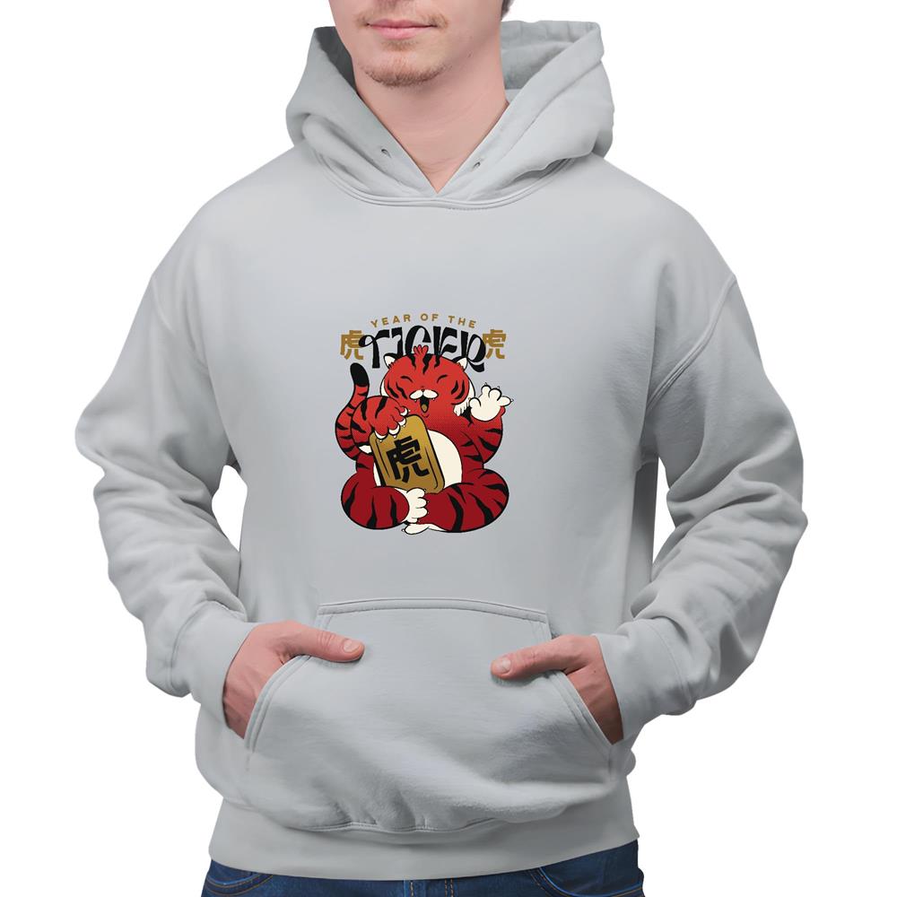 Tiger Themed Gift Chinese New Year Symbolism and Motivational Quote Perfect for All Ages Gray and Muticolor Unisex Hoodie