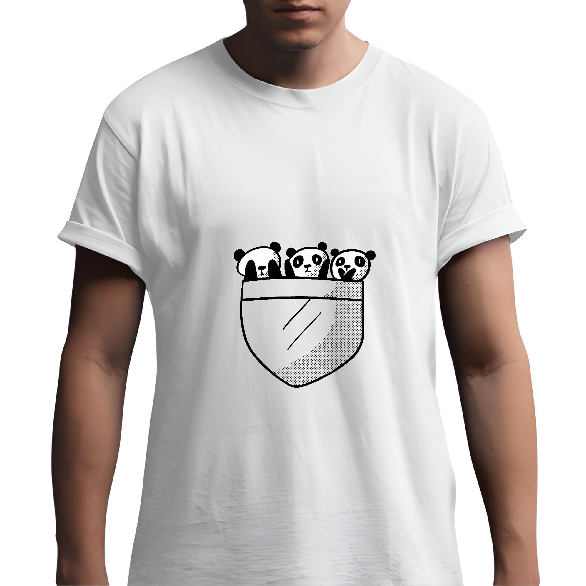 Three Wise Monkeys Gift Panda Pocket Gift for Kids and Adults Men Women White Gray Multicolor T shirt