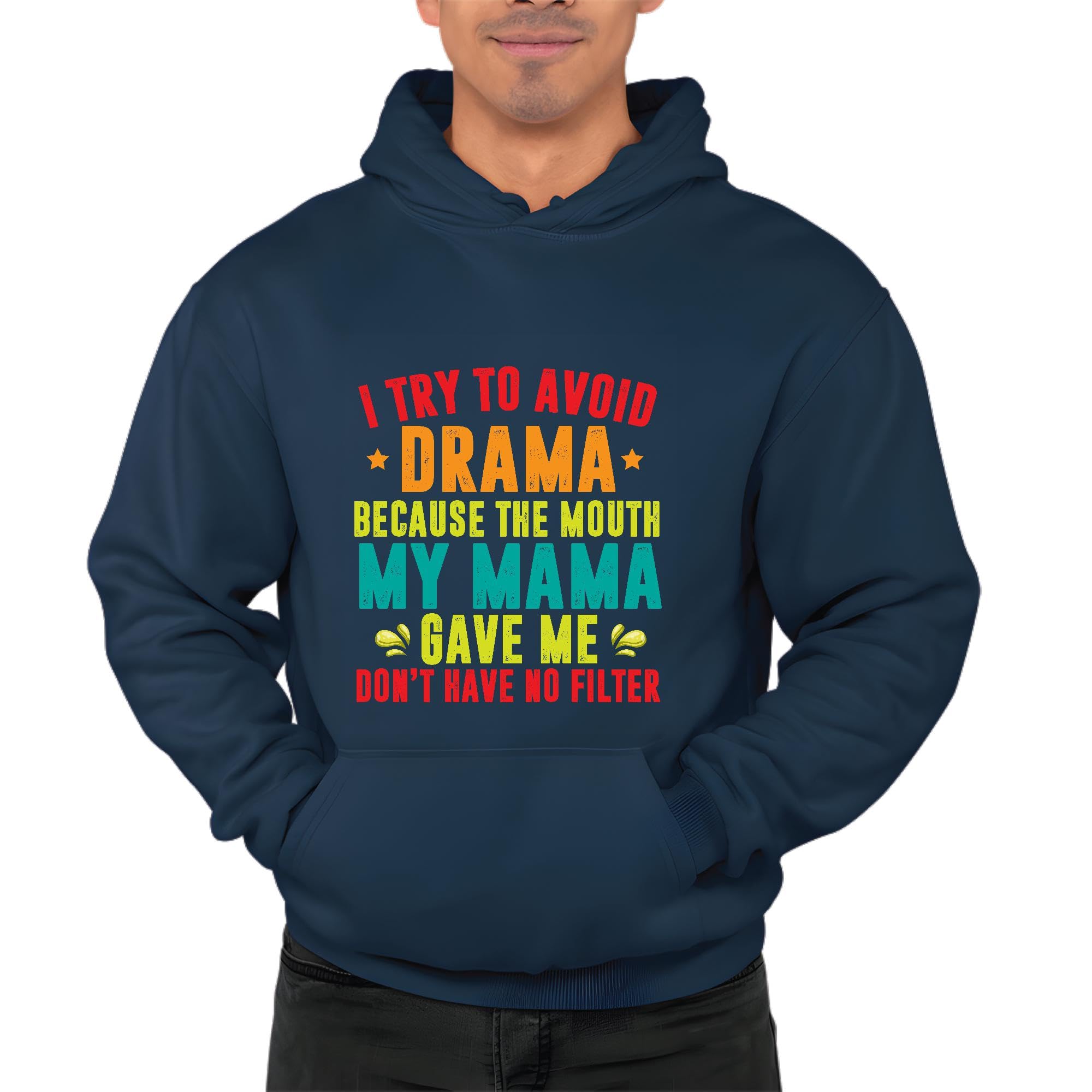 To avoid drama because the mouth my Mama gave me Navy and Muticolor Unisex Hoodie