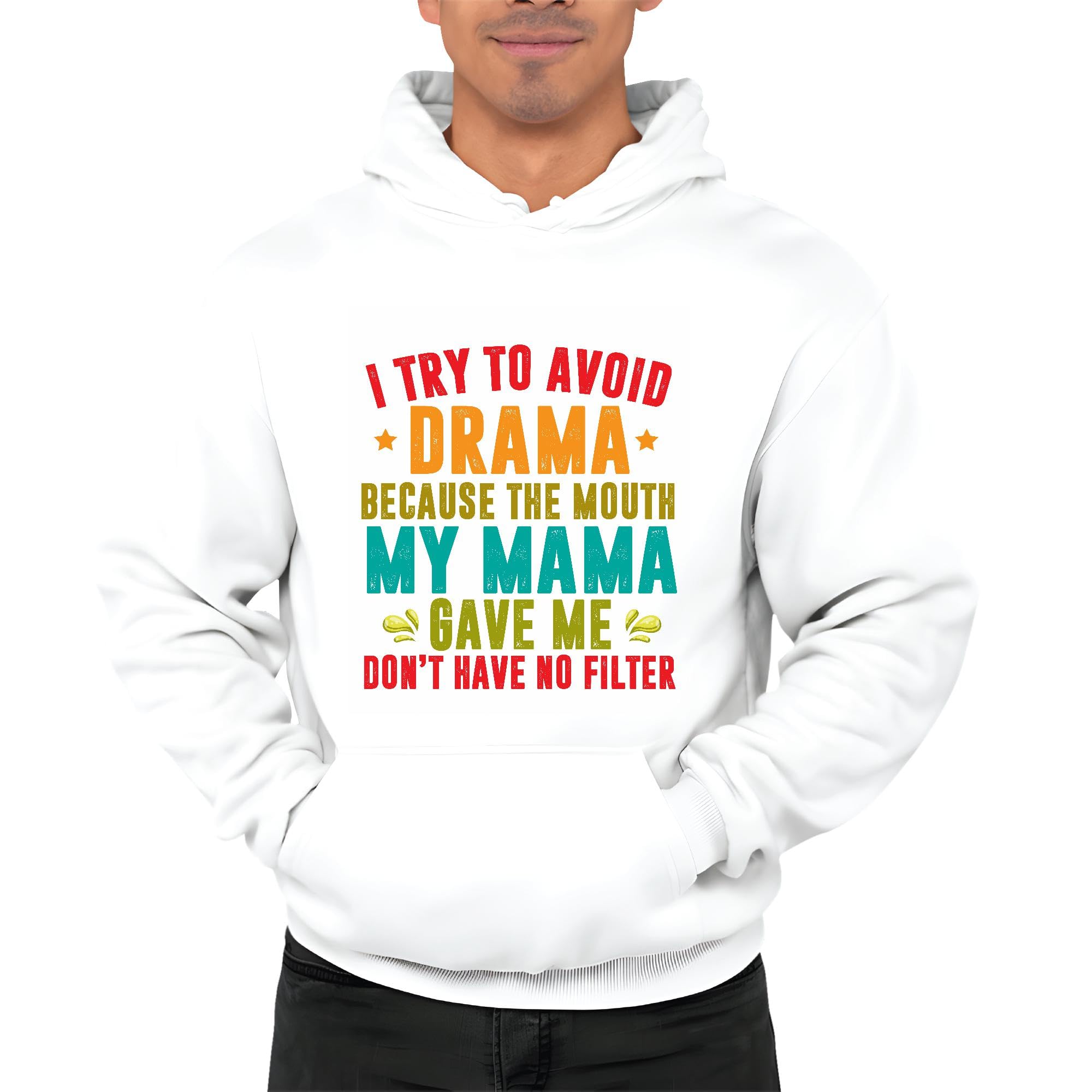 To avoid drama because the mouth my Mama gave me White and Muticolor Unisex Hoodie