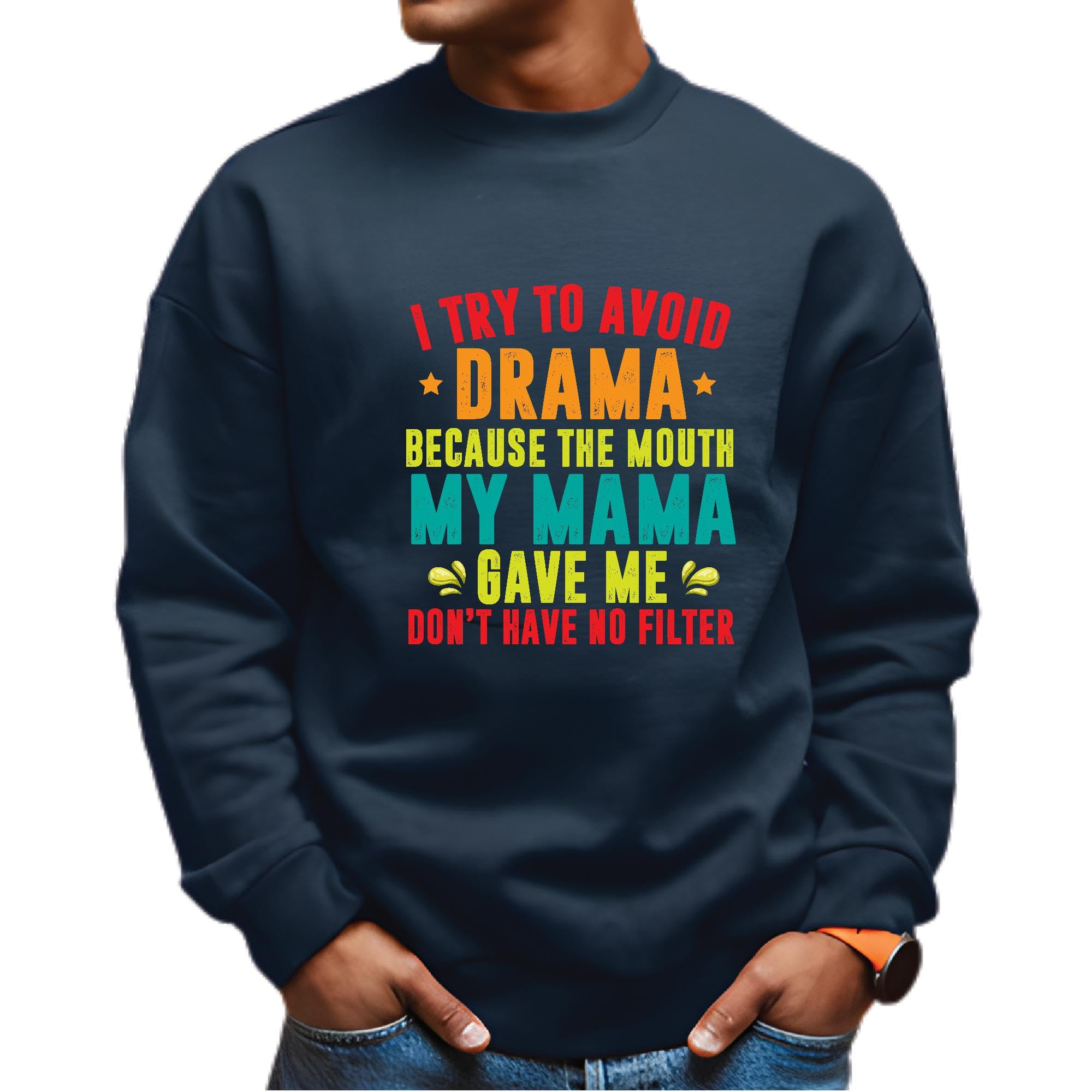 To avoid drama because the mouth my Mama gave me Navy Muticolor Unisex Sweatshirt