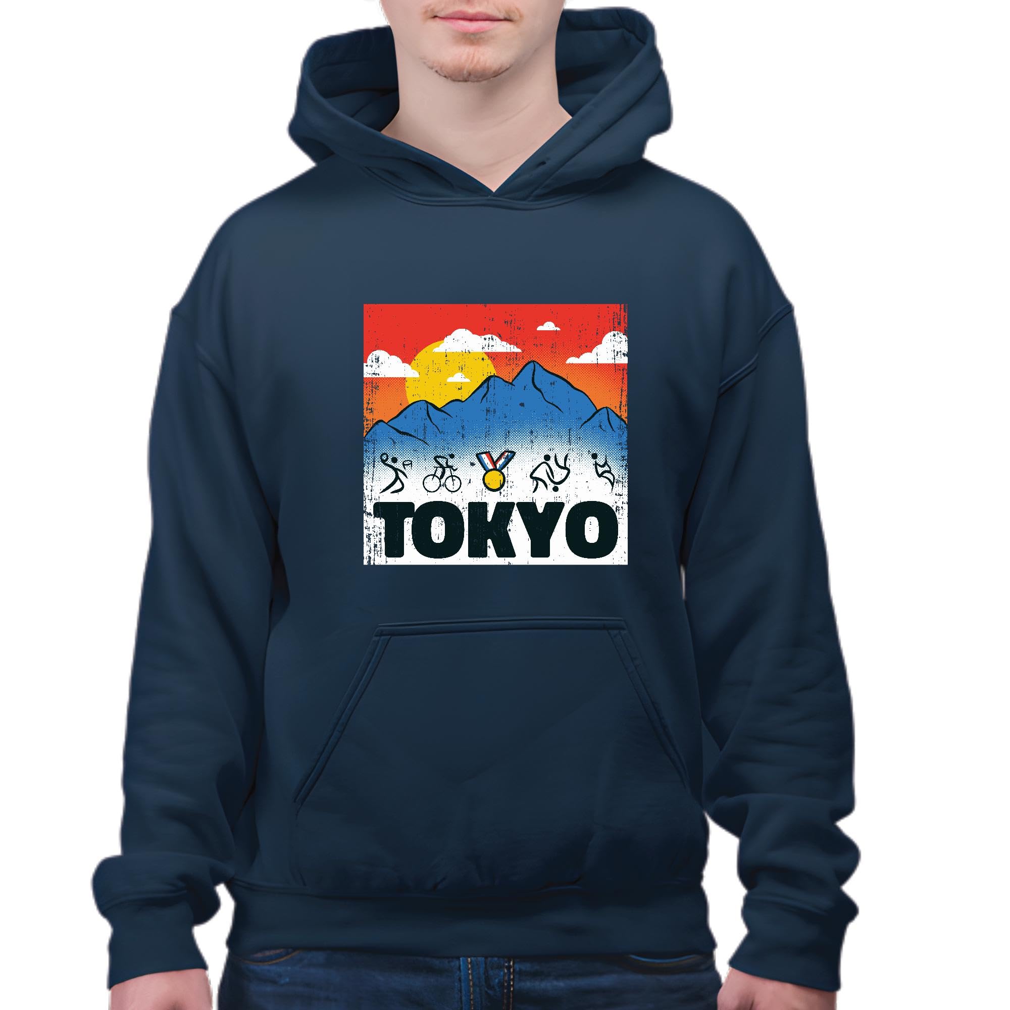 Tokyo Olympics Gift Sports Stick Figures on Mountain Background for Sports Fans Navy and Muticolor Unisex Hoodie
