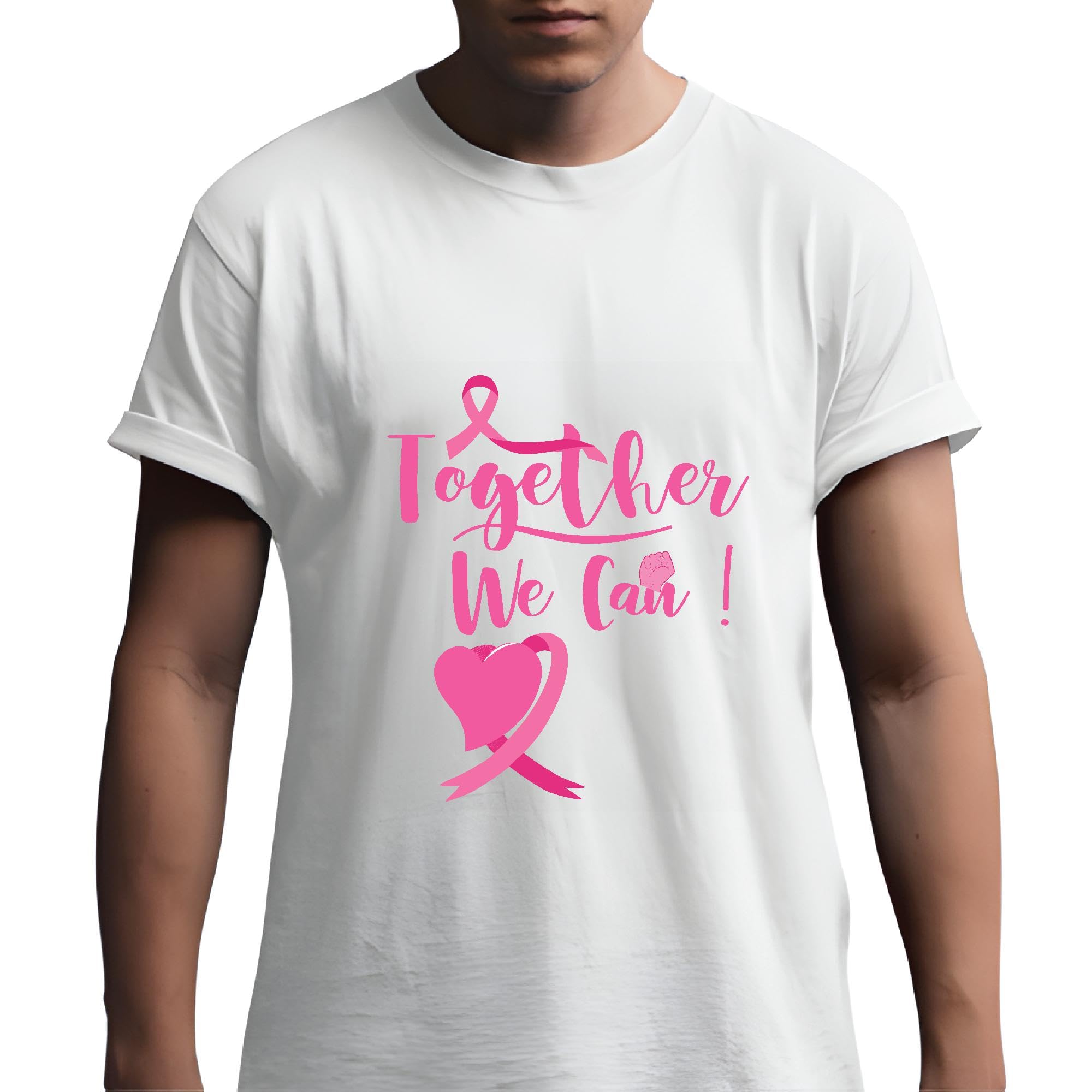 Together We Can Pink Ribbon for Breast Cancer Awareness Men Women White Gray Multicolor T shirt
