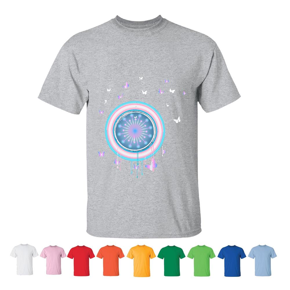 Transgender Pride Gift Idea Subtle Flag Flower Butterfly Pride Gift for Transgender Community Men Women White Gray T shirt