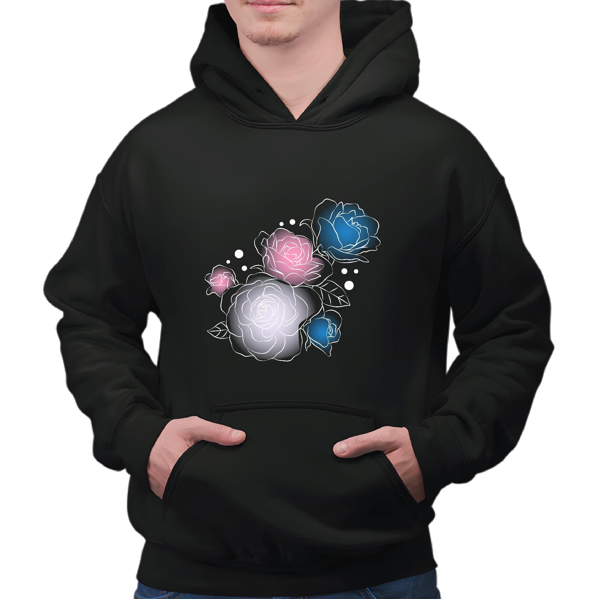 Transgender Pride Gift Subtle Flag Floral Design for All Black and Muticolor Unisex Hoodie