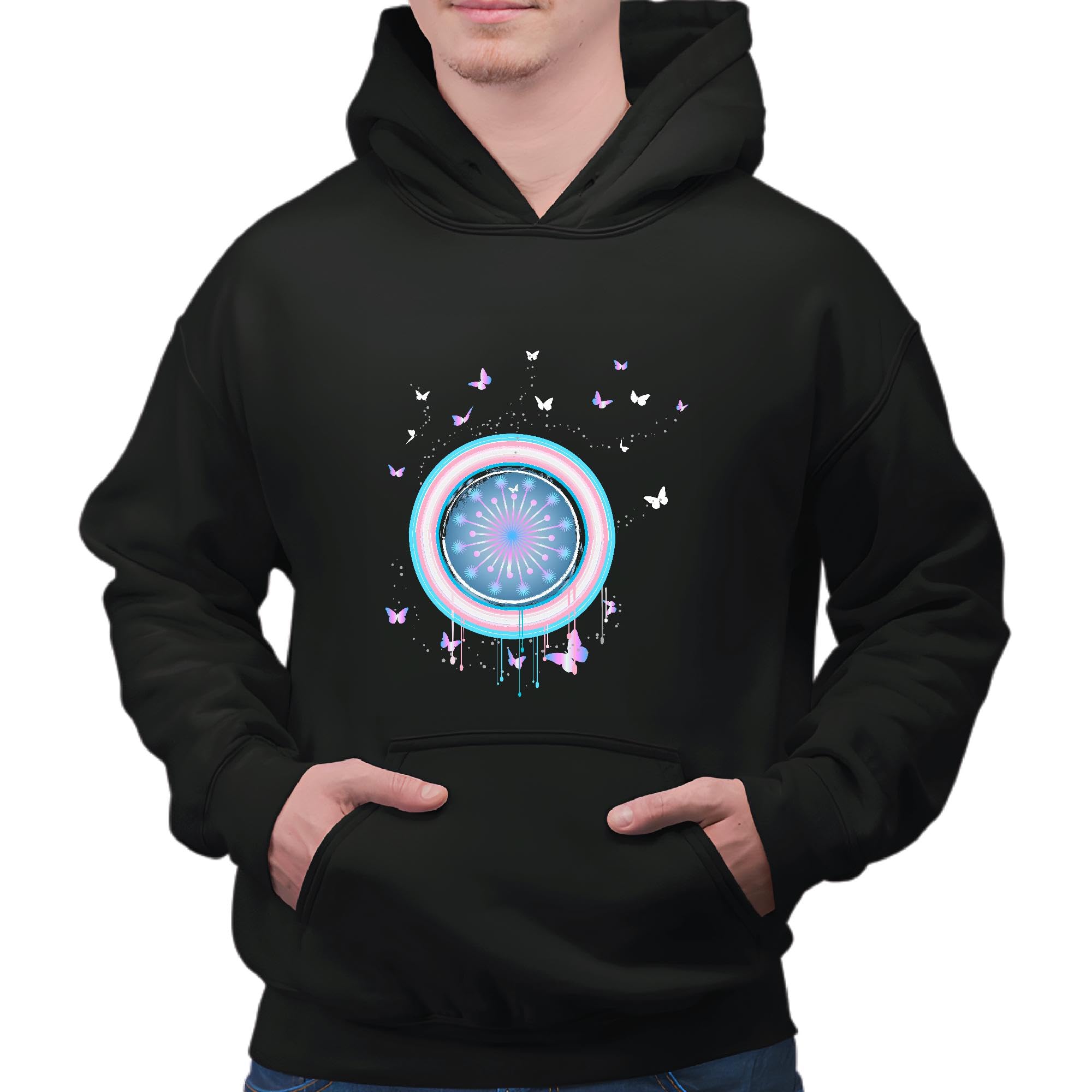 Transgender Pride Gift Subtle Flag Flower Butterfly Pride Gift for Transgender Community Black and Muticolor Unisex Hoodie