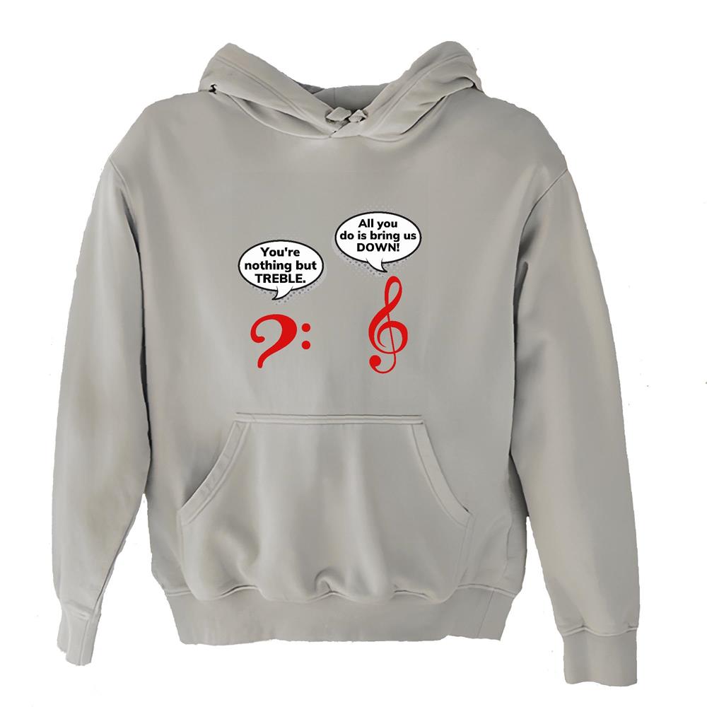 Treble Bass Clef Musical note and funny Music Pun for Music Lover Musician Producer White and Muticolor Unisex Hoodie