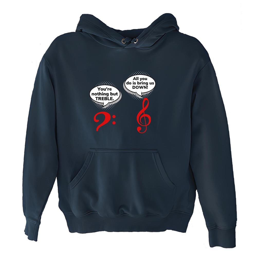 Treble Bass Clef Musical note and funny Music Pun for Music Lover Musician Producer Navy and Muticolor Unisex Hoodie