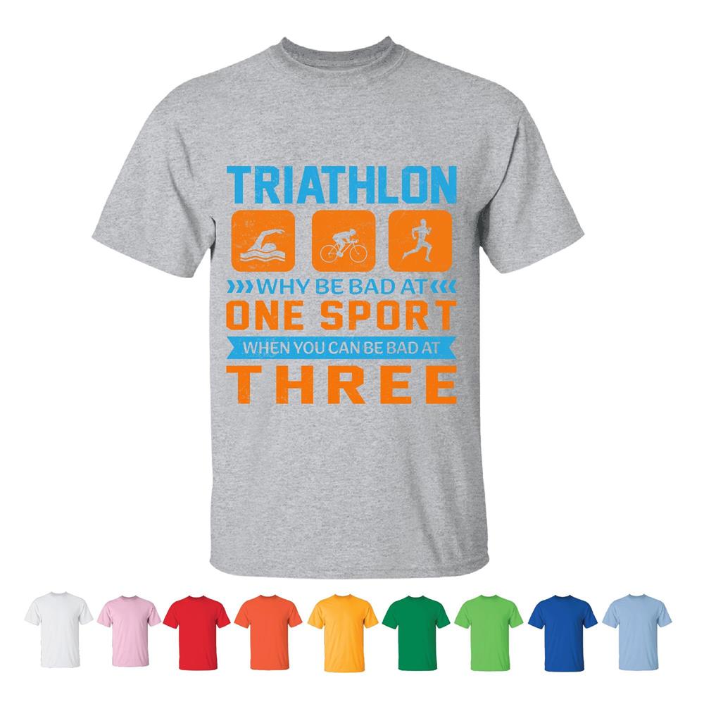 Triathlon Why Be Bad at One Sport When You Can Be Bad At Three funny Sport Lover Quote Men Women White Gray T shirt