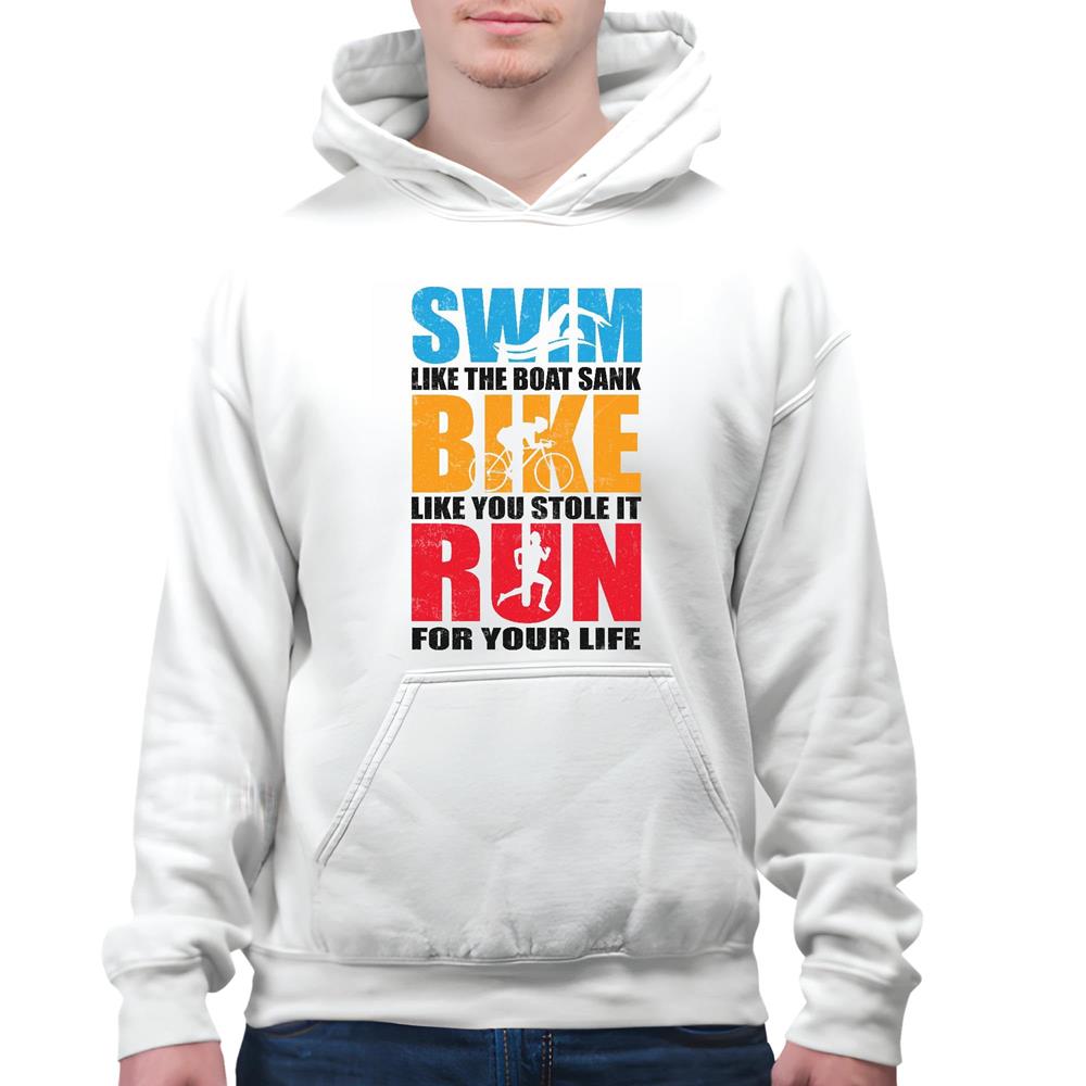 Triathlon Swim Bike Run for Athletes and Sport Lover White and Muticolor Unisex Hoodie