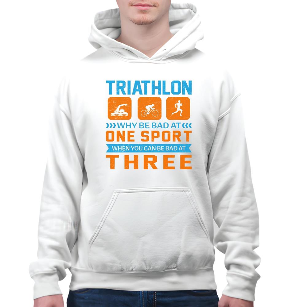 Triathlon Why Be Bad at One Sport When You Can Be Bad At Three funny Sport Lover Quote White and Muticolor Unisex Hoodie