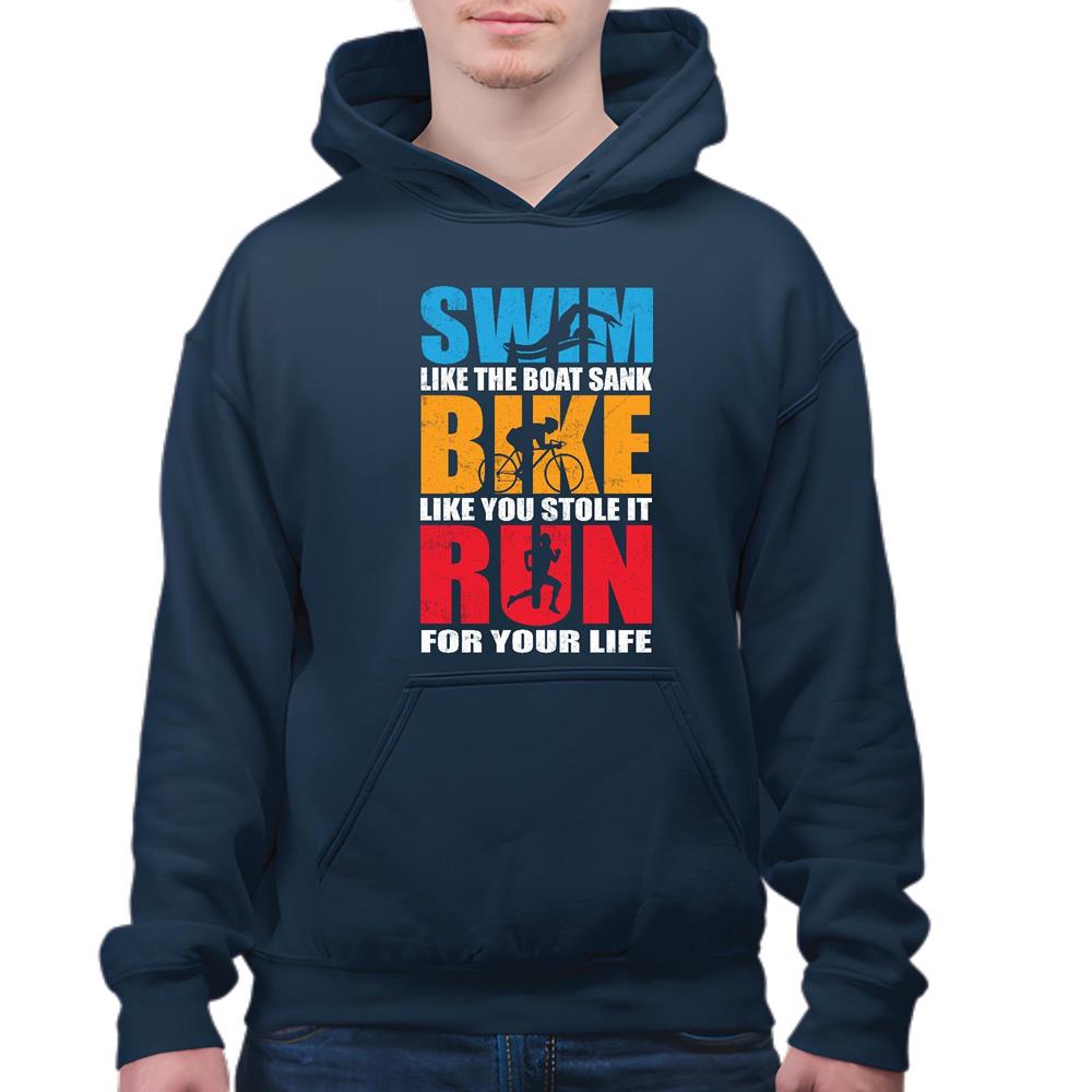 Triathlon Swim Bike Run for Athletes and Sport Lover Navy and Muticolor Unisex Hoodie