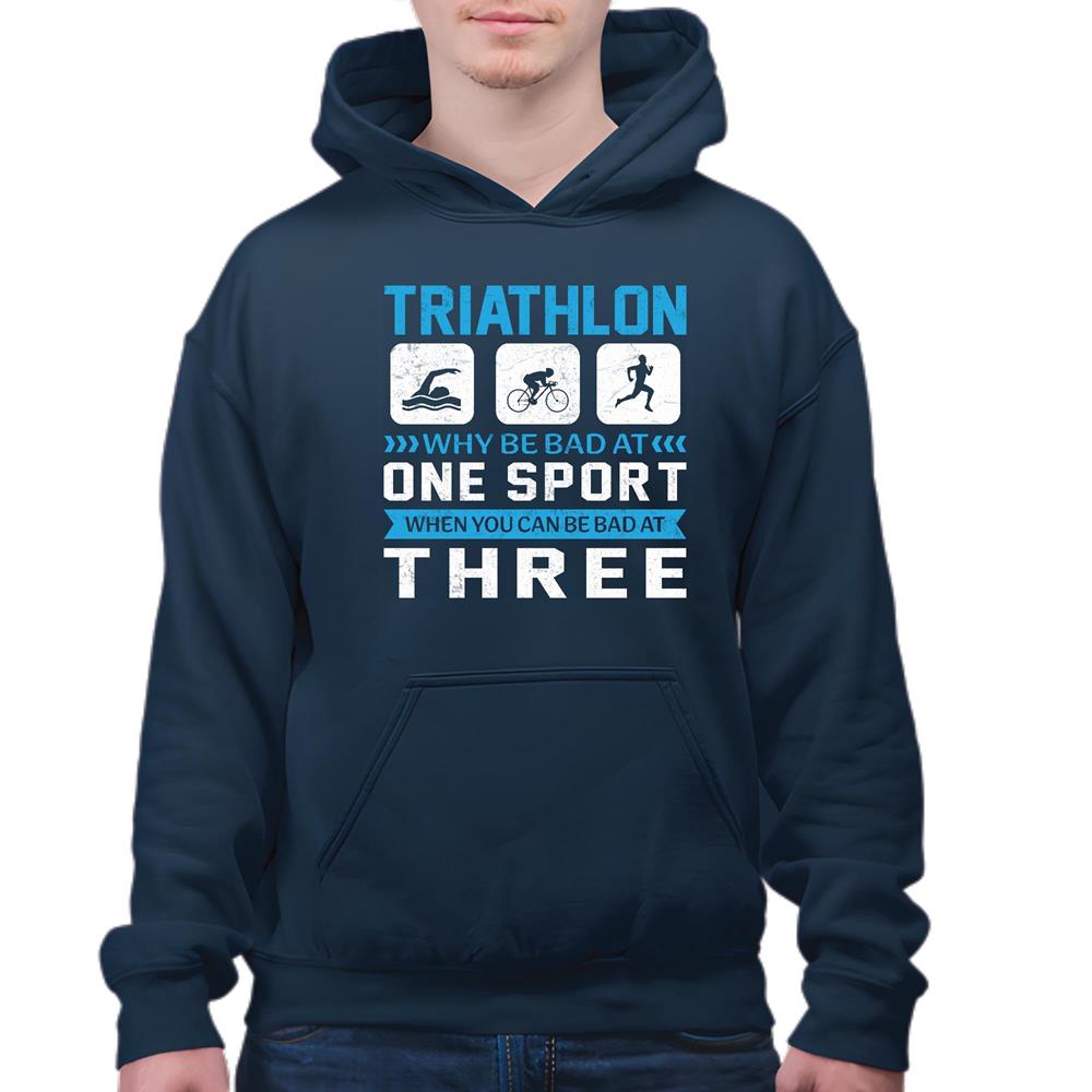 Triathlon Why Be Bad at One Sport When You Can Be Bad At Three funny Sport Lover Quote Navy and Muticolor Unisex Hoodie