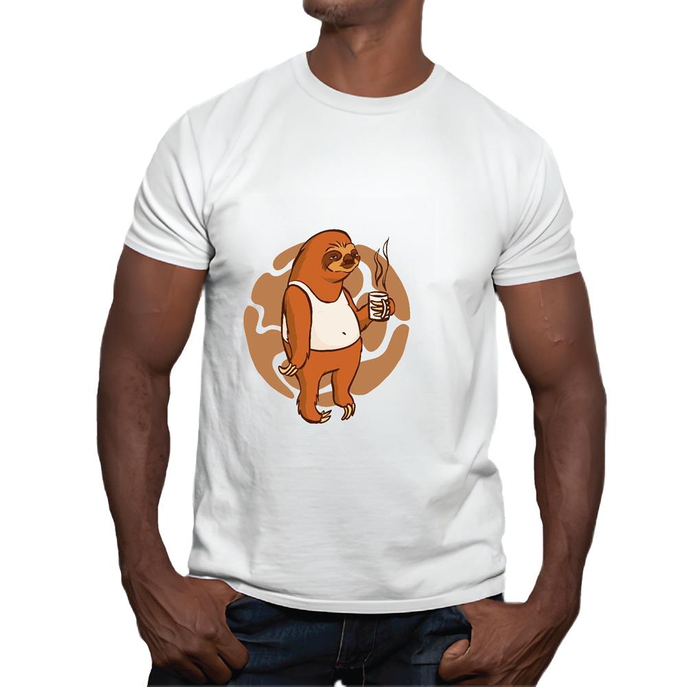 Trendy Sloth Design Gift for Coffee Lovers Perfect for Any Occasion Men Women White Gray Multicolor T shirt