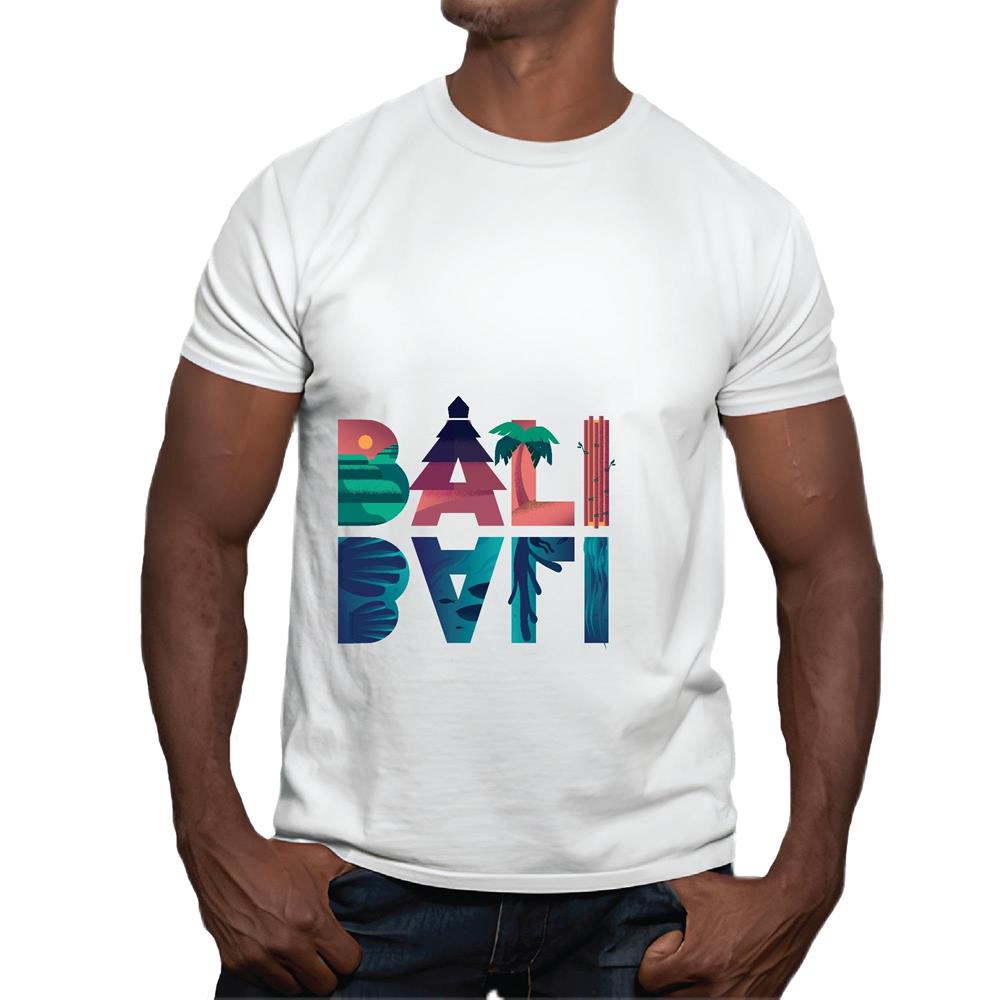 Tropical Style Gift Featuring Caption Bali for All Ages Men Women White Gray Multicolor T shirt