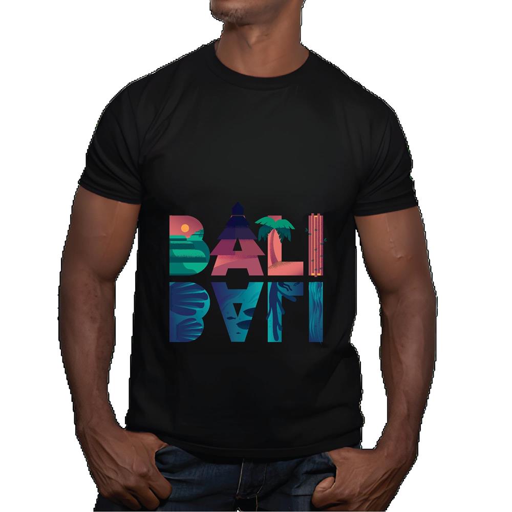 Tropical Style Gift Featuring Caption Bali for All Ages Men Women Black Multicolor T shirt
