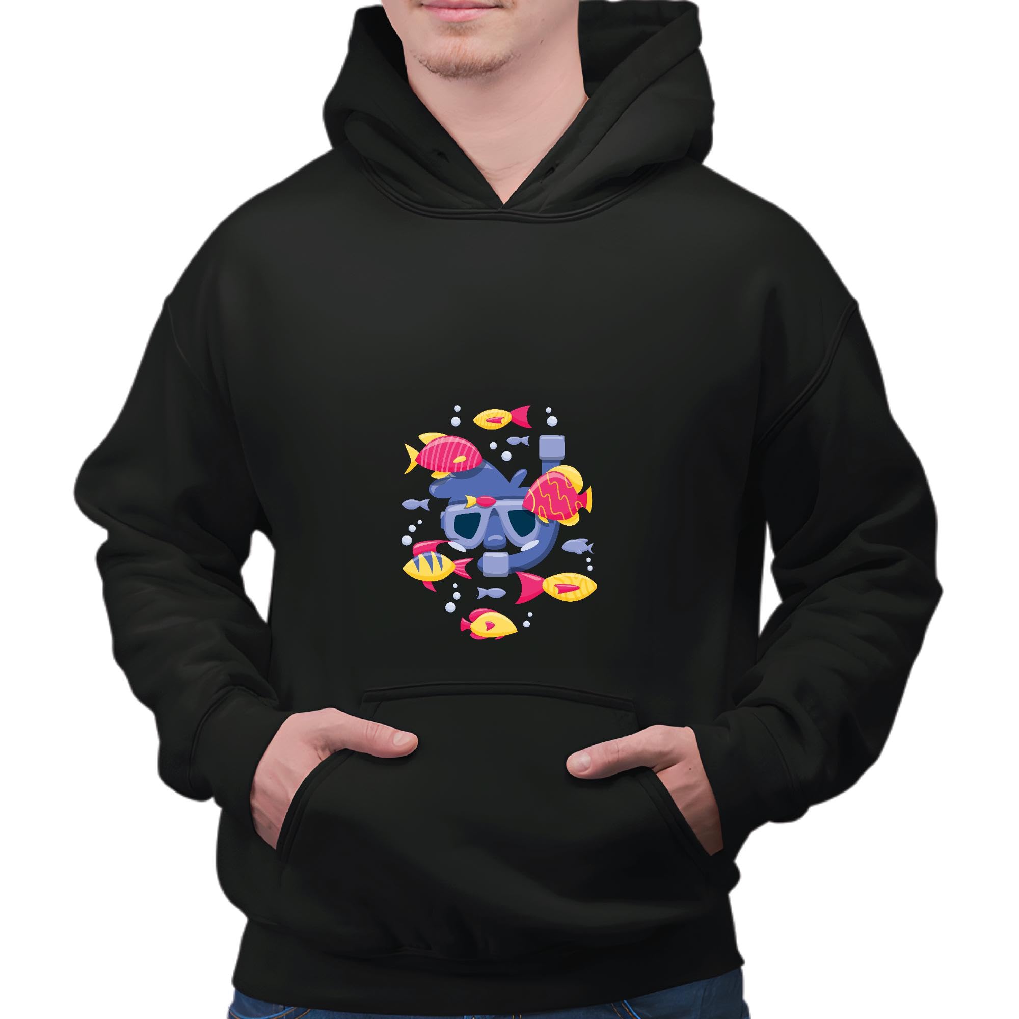 Tropical Fish Snorkeling Gift for Men Unique Design for Ocean Lovers Black and Muticolor Unisex Hoodie