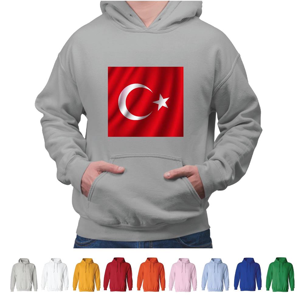 Turkish National Flag Banner Gift for Turkish Country Fans Waving Crescent Gray and Muticolor Unisex Hoodie