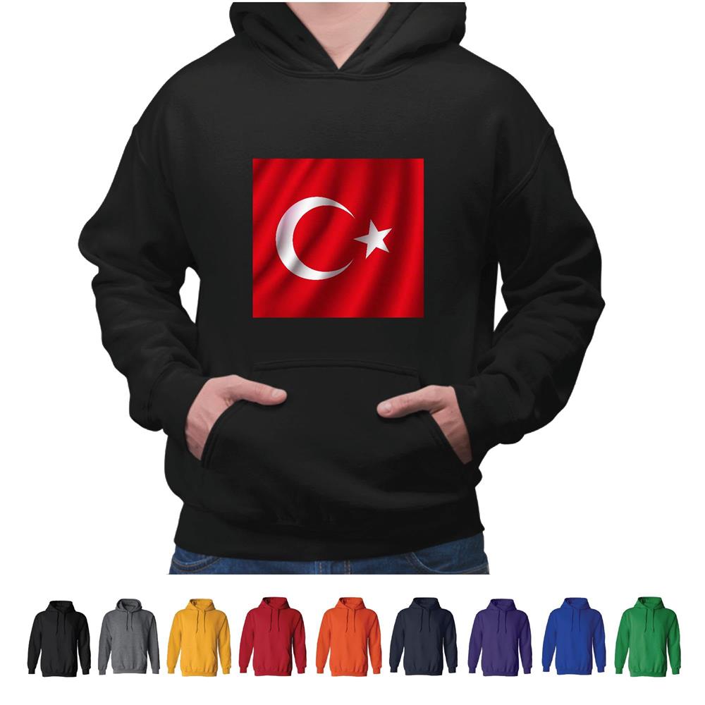 Turkish National Flag Banner Gift for Turkish Country Fans Waving Crescent Black and Muticolor Unisex Hoodie
