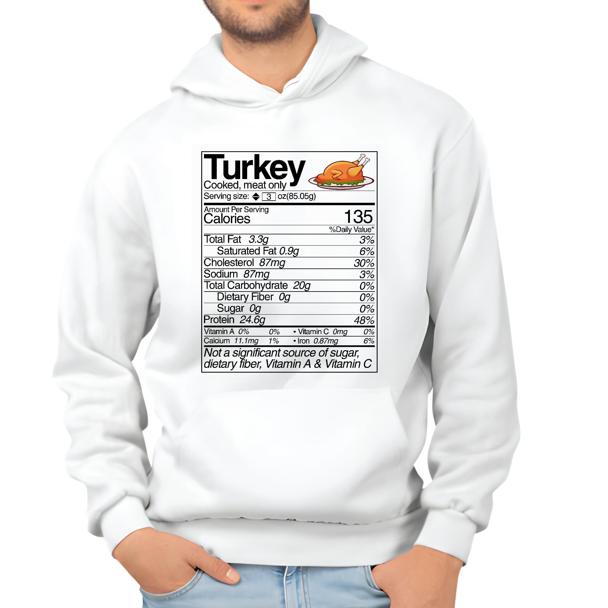 Turkey Nutrition Facts funny White and Muticolor Unisex Hoodie
