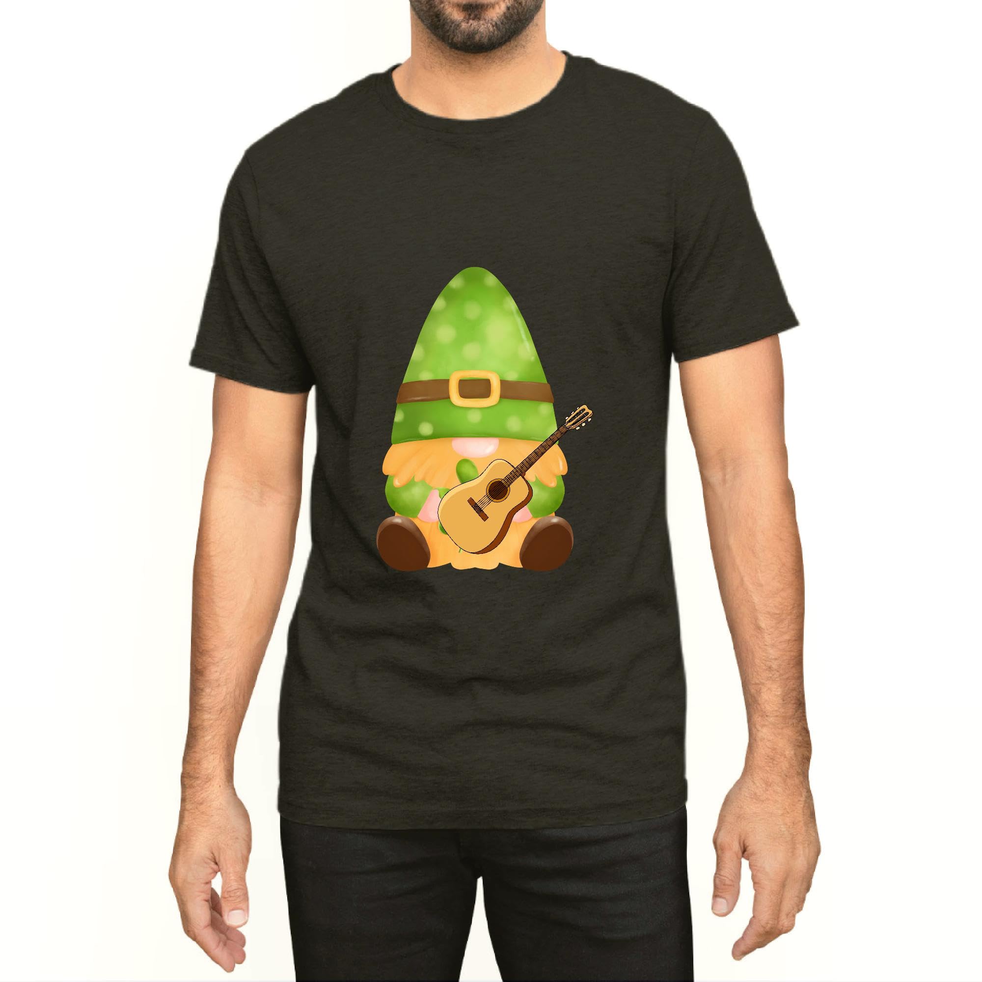Ukulele Gnome Irish happy Patricks day for parents kid friend Men Women Black Multicolor T shirt