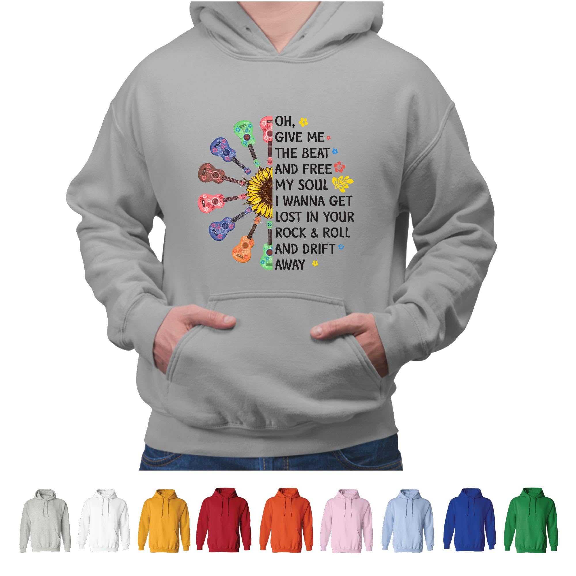 Ukulele Instrumental Music Gift for Soulful Music Lovers Gray and Muticolor Unisex Hoodie