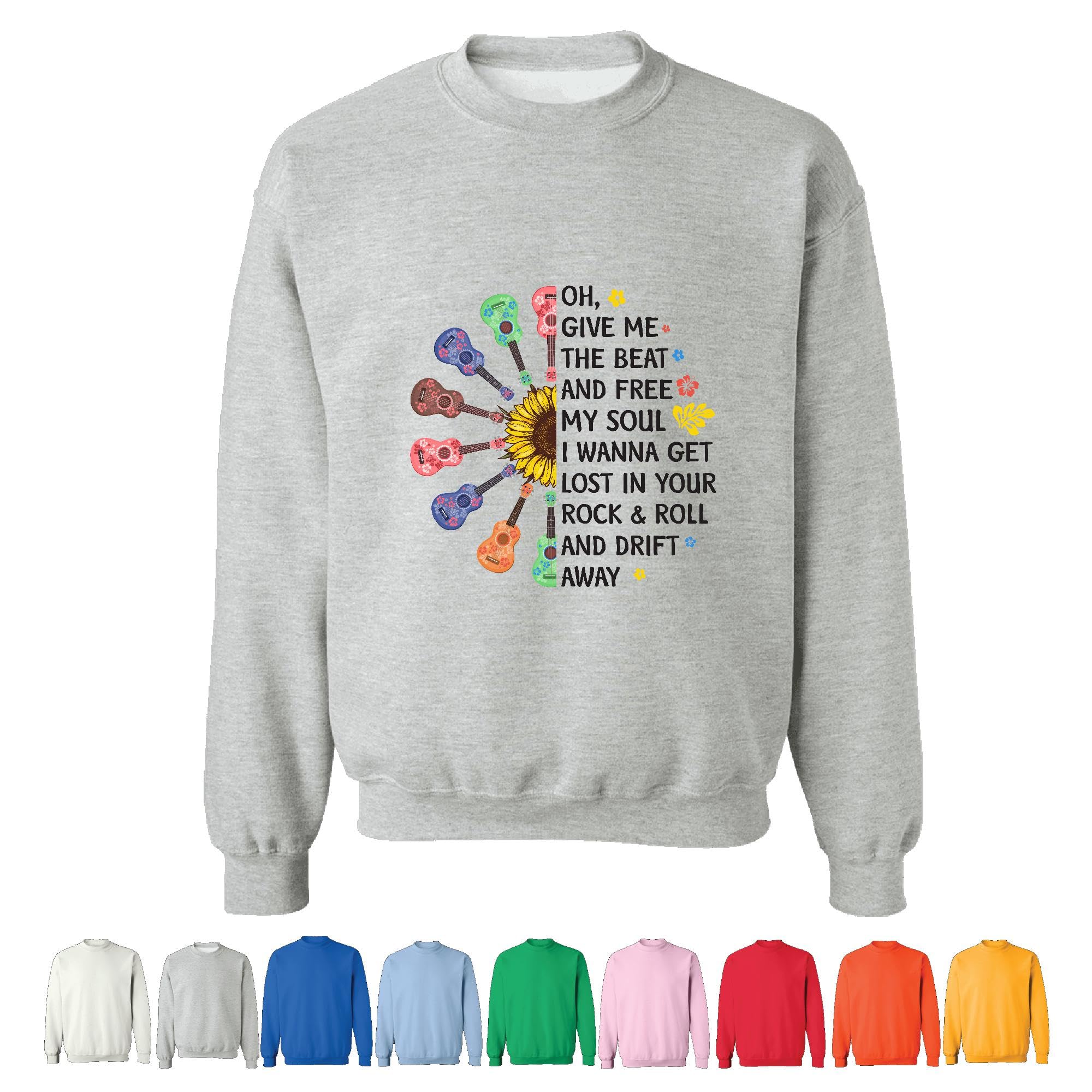 Ukulele Instrumental Music Gift for Soulful Music Lovers Grey Muticolor Unisex Sweatshirt