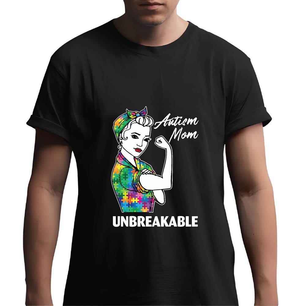 Unbreakable Autism Mom puzzle piece Supporter for Autism awareness month Men Women Black Multicolor T shirt