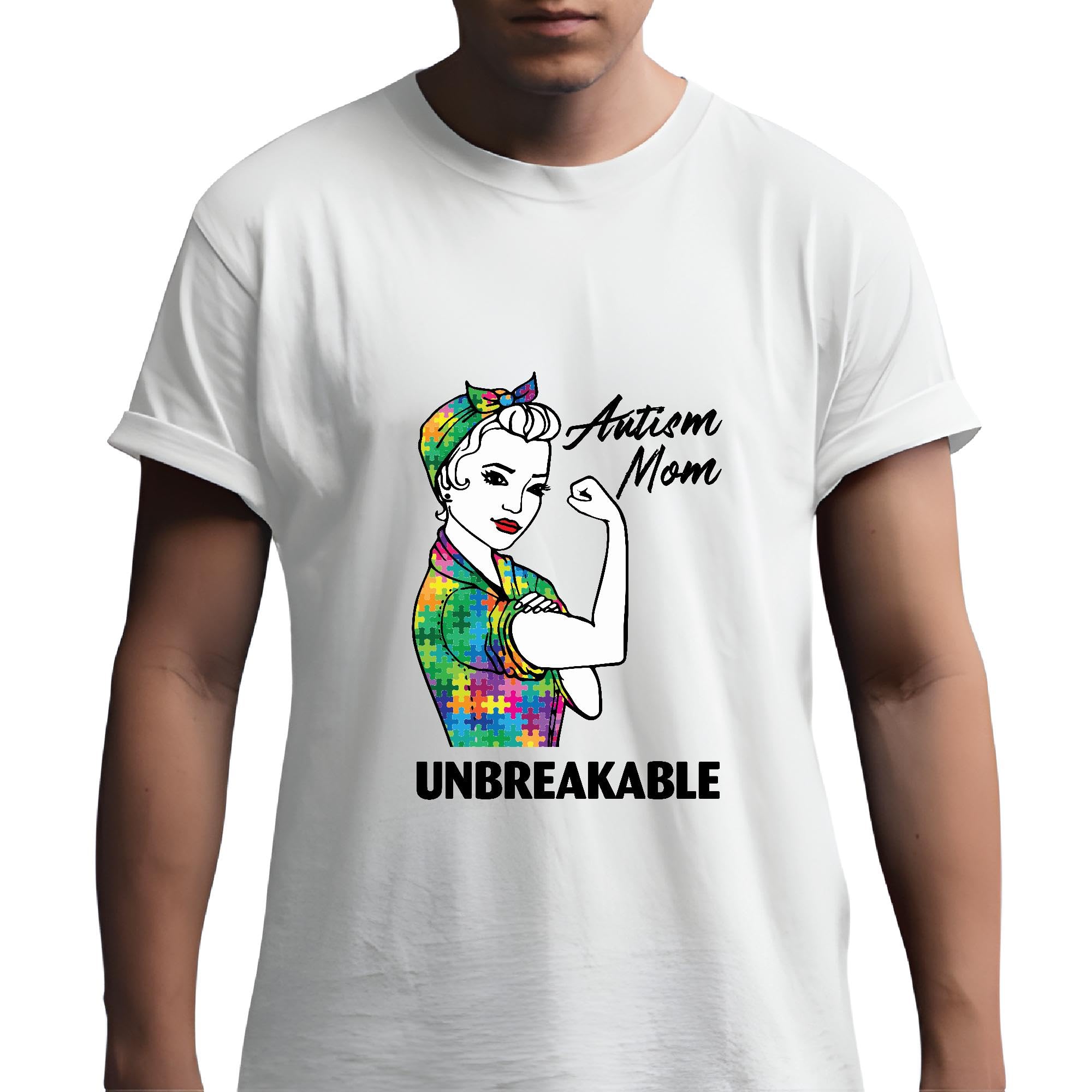 Unbreakable Autism Mom puzzle piece Supporter for Autism awareness month Men Women White Gray Multicolor T shirt