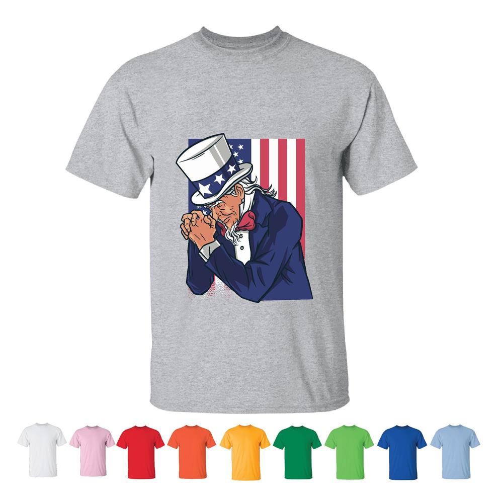 Uncle Sam Praying Gift for US Patriotic Culture Lovers Men Women White Gray T shirt