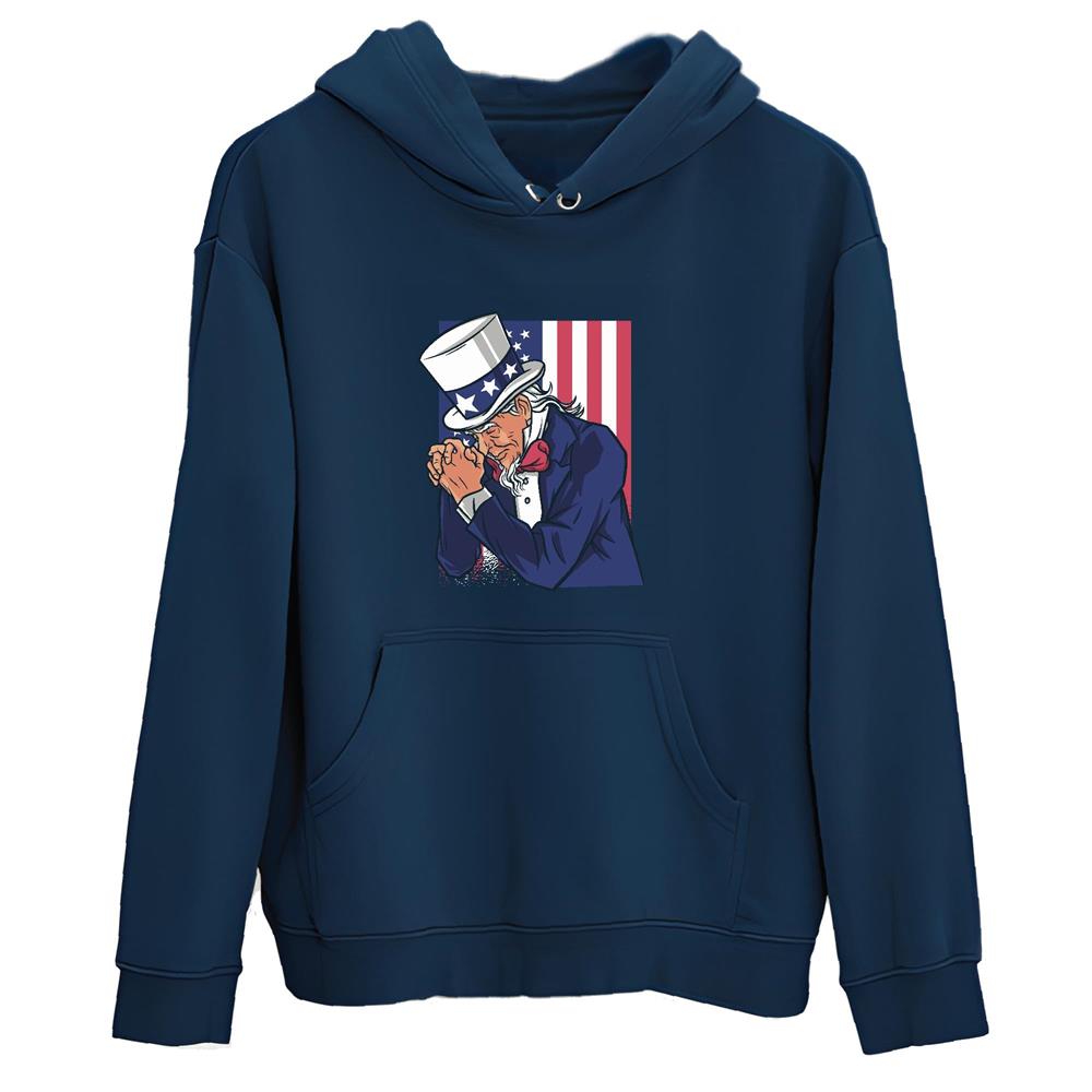 Uncle Sam Praying Gift for US Patriotic Culture Lovers Navy and Muticolor Unisex Hoodie