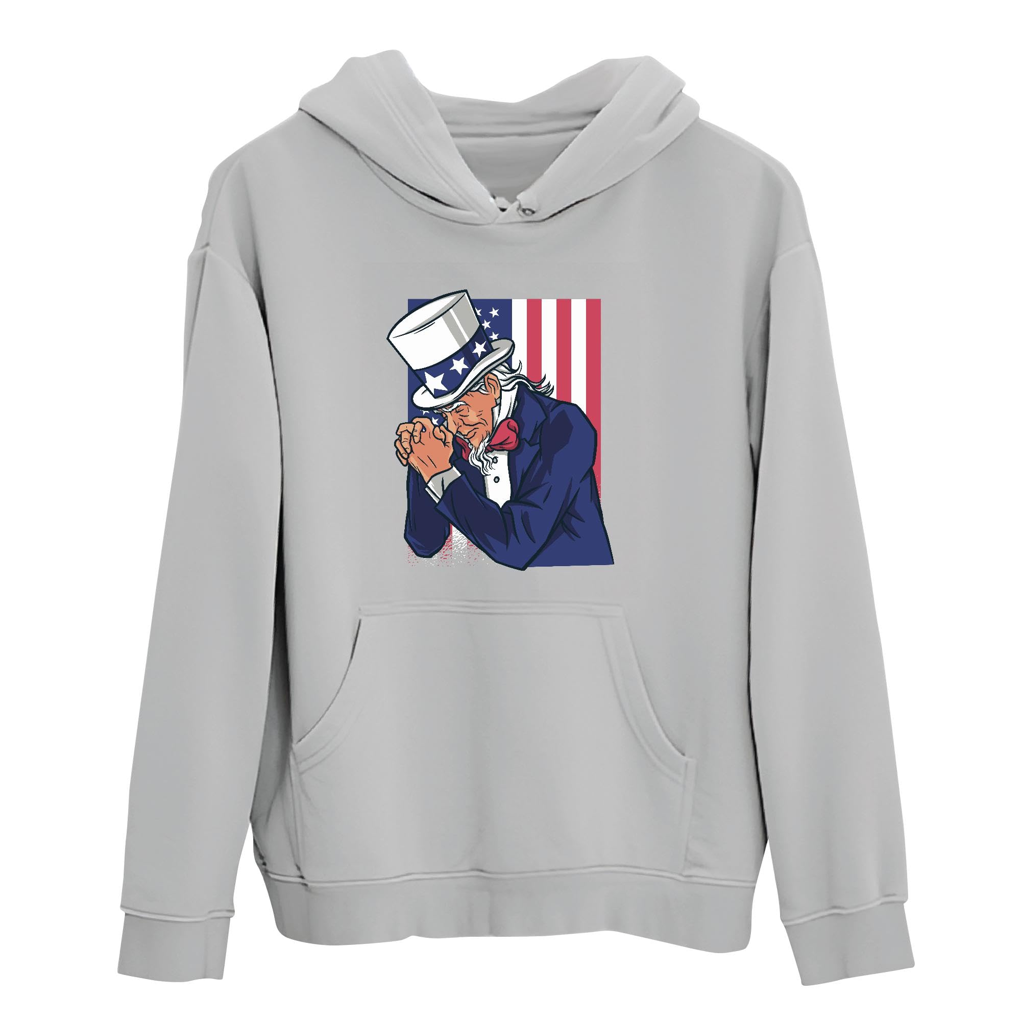 Uncle Sam Praying Gift for US Patriotic Culture Lovers Gray and Muticolor Unisex Hoodie