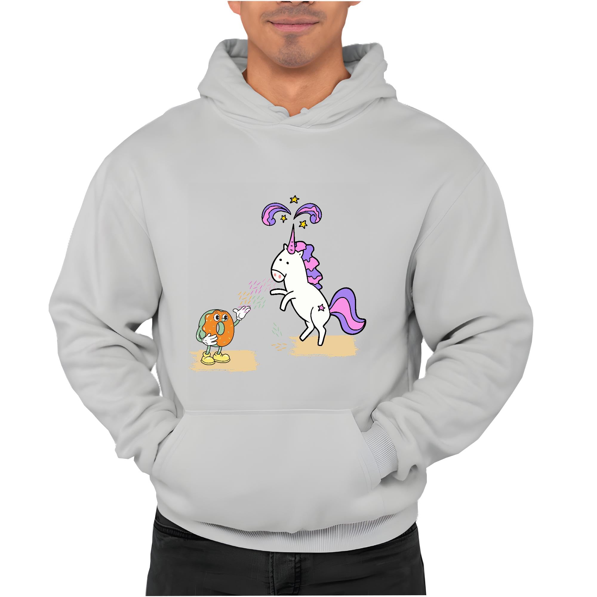 Unicorn Humor Gift for Donut Lovers Gray and Muticolor Unisex Hoodie