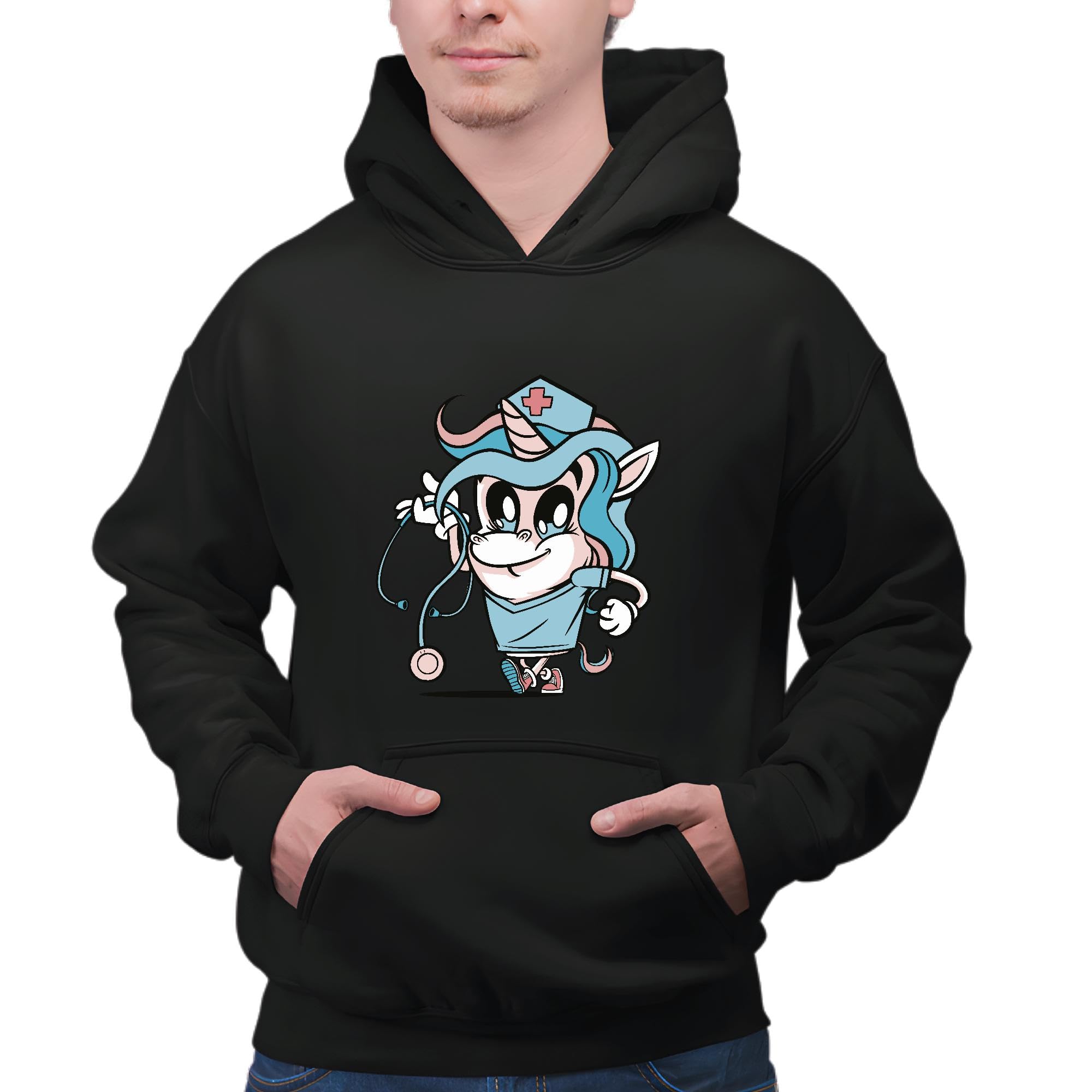 Unicorn Nurse Design Gift Perfect For Fantasy Lovers and Nurses Black and Muticolor Unisex Hoodie
